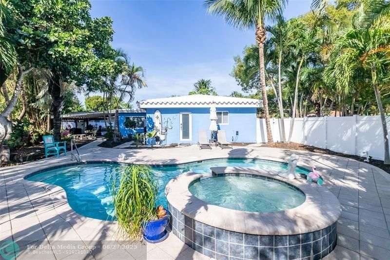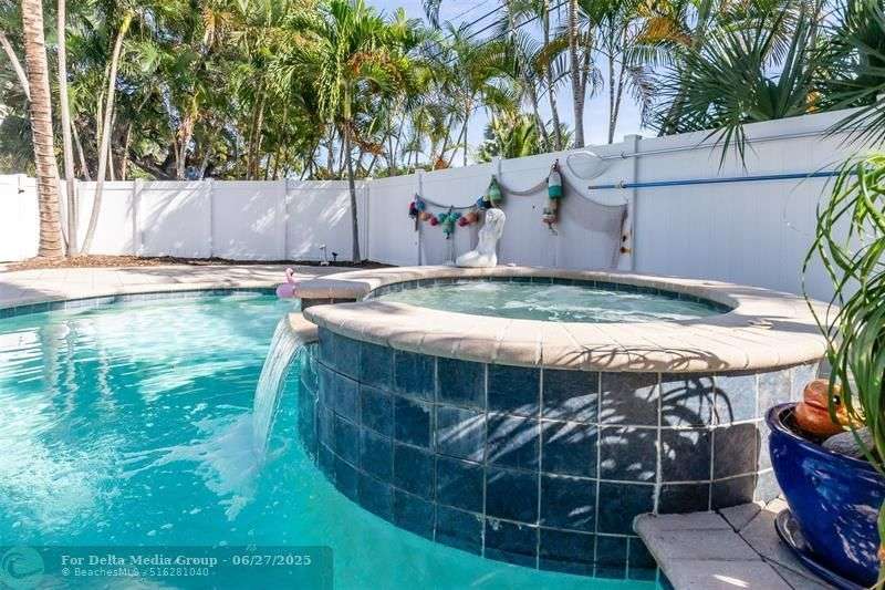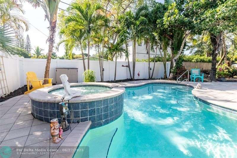 Step into this stunning 3-bedroom, 2-bath home with an open layout blending comfort and style. Located in a sought-after neighborhood, it’s perfect for families seeking the ultimate Florida lifestyle or investors pursuing lucrative short-term rental opportunities. The split floor plan offers privacy, with the primary suite separated from the secondary bedrooms—ideal for hosting guests. The backyard is a true paradise, featuring a sparkling pool, waterfall jacuzzi, and spacious covered patio, perfect for BBQs or alfresco dining. Situated on an oversized corner lot, the home boasts ample outdoor space, a circular driveway, and easy access to Fort Lauderdale Beach (10 min) and Wilton Manors (2-5 min) with shopping, dining, and nightlife.