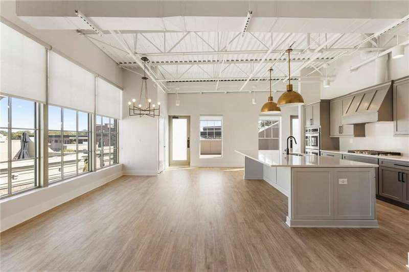 SEXY is the only way to describe the fabulous Lofts at Crabapple Market...There is simply nothing like this in the area. Watch your friends' mouths drop in envy when you entertain in the kitchen, the massive great room, or on the rooftop of your new home. A private elevator serves all floors of the unit, from the garage with custom drop zone up to the bedrooms and living areas. Design details include shiplap walls, exposed brick, waterproof luxury plank flooring, custom window treatments, and spectacular design choices throughout. With floor to ceiling windows in every room you may never turn on a light until sundown...but when you do you'll appreciate the gorgeous fixtures curated by local Indigo Designs. Building "O" has just 2 units and is designed with an inverse floor plan placing the kitchen and main living area on the uppermost floors. This thoughtful feature means that you have the best views from the areas where you spend the most time. Soaring ceilings and expansive square footage gives the space a truly lofty edge. In the kitchen find quartz countertops, custom shaker cabinets with soft close, double ovens, gas cooktop with custom vent hood, microwave, dishwasher and walk-in pantry. In-unit laundry with washer & dryer included. Pair these lovely interior features with the exceptional Crabapple Lifestyle: walk to dozens of restaurants and retail shops, enjoy the Milton Farmers Market on Wednesday afternoons, catch concerts on The Green in the evenings and gorgeous neighborhood walks in the mornings. Have breakfast at The Nest, lunch at Knuckies, pick up a book at Poe's, dinner at Lily Sushi, a Guinness at Olde Blind Dog and live music with great brews and BBQ at Six Bridges. All of this in one of Georgia's top school districts with easy access to downtown Alpharetta and Roswell. **Photos are of the neighboring unit; identical floor plan with beautiful but slightly different finishes.
