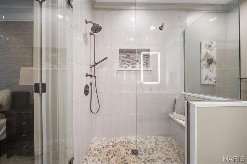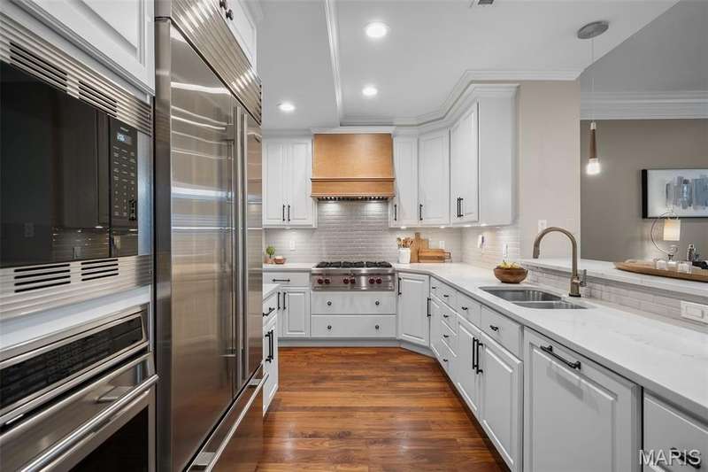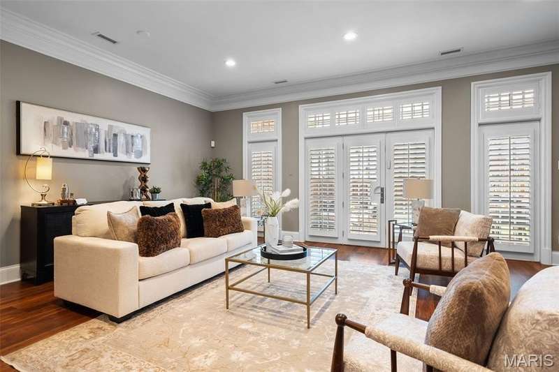 A showpiece of refined living in the heart of Clayton, this exceptional luxury residence has been fully reimagined with sophisticated elegance and magazine-worthy style. From the moment you step inside, every detail whispers quality, comfort, and quiet glamour—soaring ceilings, designer lighting, fresh flooring, and exquisite custom finishes throughout. The gourmet kitchen is a stunning centerpiece, featuring sleek white cabinetry, quartz counters, soft-close features, and professional-grade appliances including Wolf range—all framed by warm hardwoods and timeless millwork. Sun-filled living and dining spaces create an effortless flow for entertaining and everyday enjoyment, with French doors opening onto your own private oasis. Outdoors, the courtyard patio offers resort-style living with a retractable awning, elegant lounge area, and a custom putting green—perfect for morning coffee, evening wine, or weekend gatherings with style. Retreat upstairs to a serene primary suite boasting a custom walk-in closet and a spa-inspired bath with Brizo fixtures, frameless glass shower, and stone mosaic flooring. Additional bedrooms and beautifully renovated baths continue the home’s elevated design and thoughtful comfort. Located just steps from Clayton’s premier dining, boutiques, parks, and business district, this home is the very definition of luxury meets lifestyle. Exquisite and purely captivating—welcome home.