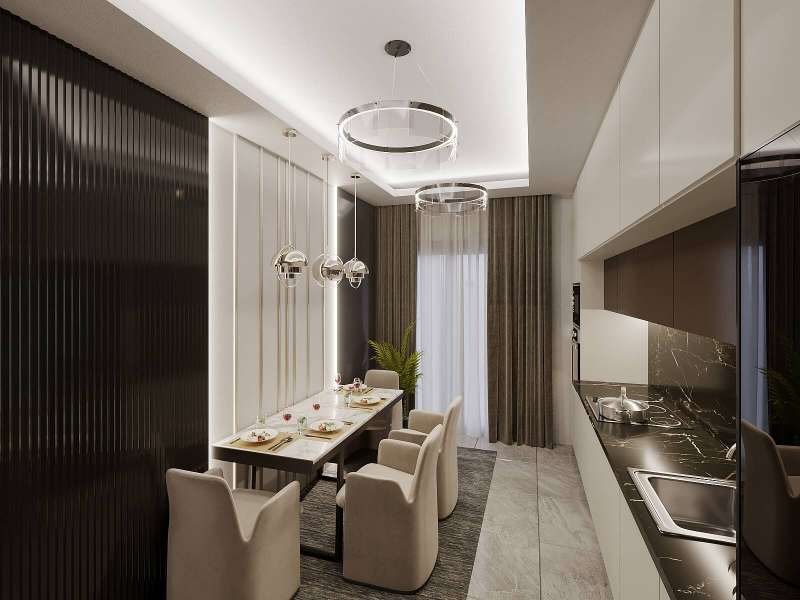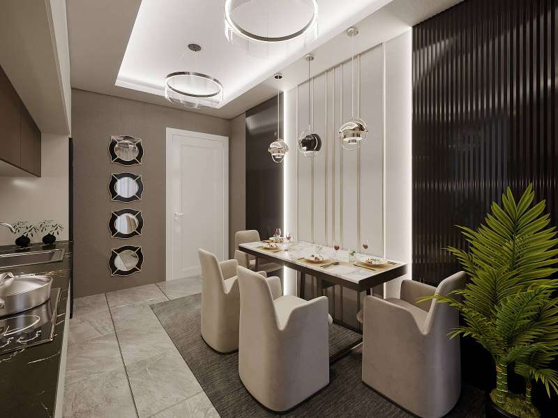 The properties for sale in Antalya Gazipasa are situated in a complex within a natural environment. The complex is located 350 m from the busiest seafront street in the region. Also, it is 1.2 km from the state hospital, 1.3 km from Gazipasa Airport and the closest beach, and 1.4 km from the intercity bus terminal.
