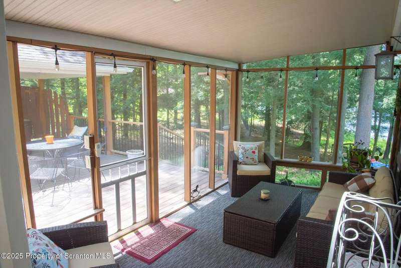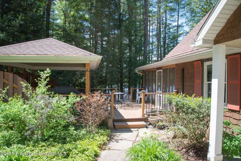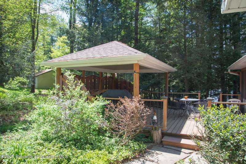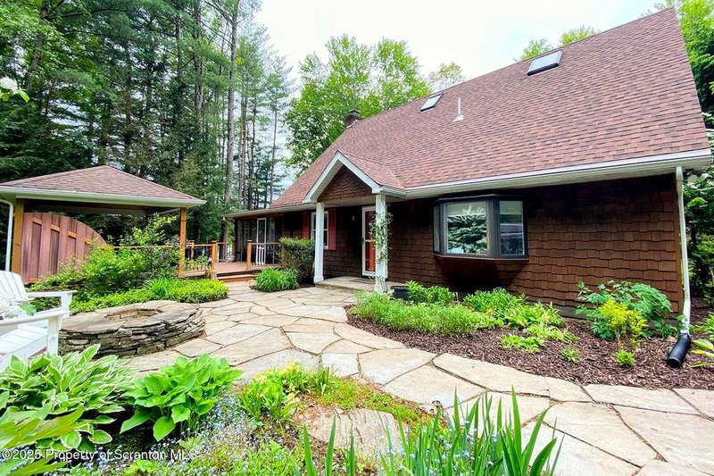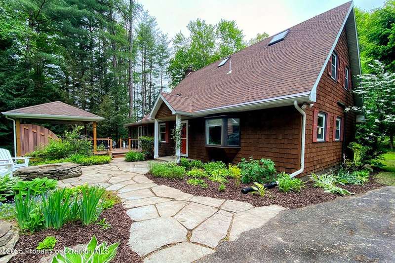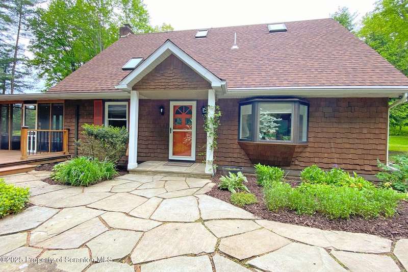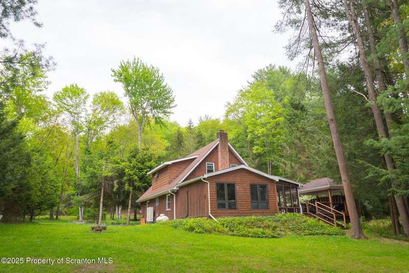 This stunning move-in ready home in Brackney, PA sits on a picturesque one acre lot that offers all the privacy and tranquility of country living while still being conveniently located only minutes from the greater Binghamton area. The home features all the benefits of a first floor primary bedroom and laundry, while another full bath and two more bedrooms are located upstairs. The spacious family room boasts a cedar plank vaulted ceiling and large windows that overlook the sweeping backyard and connects to a lovely screened-in porch. Outdoor living is a dream with composite decking, a gazebo, a hot tub, and a large flagstone patio with a firepit. Upgrades include: 4 split systems to make heating and cooling your home easy and affordable, new roofs on the house, gazebo, garage and storage shed, Foam-it sprayed insulation throughout, Leaf-Guard gutters, a three-tier septic system, gas fireplace, new sump pump and replacement windows throughout. This tranquil property is surrounded by nature, lovingly landscaped and also a two-car garage, paved driveway, and a storage shed. Montrose School District and low taxes are another added bonus. OMG rights transfer. Don't miss this opportunity! Call today!