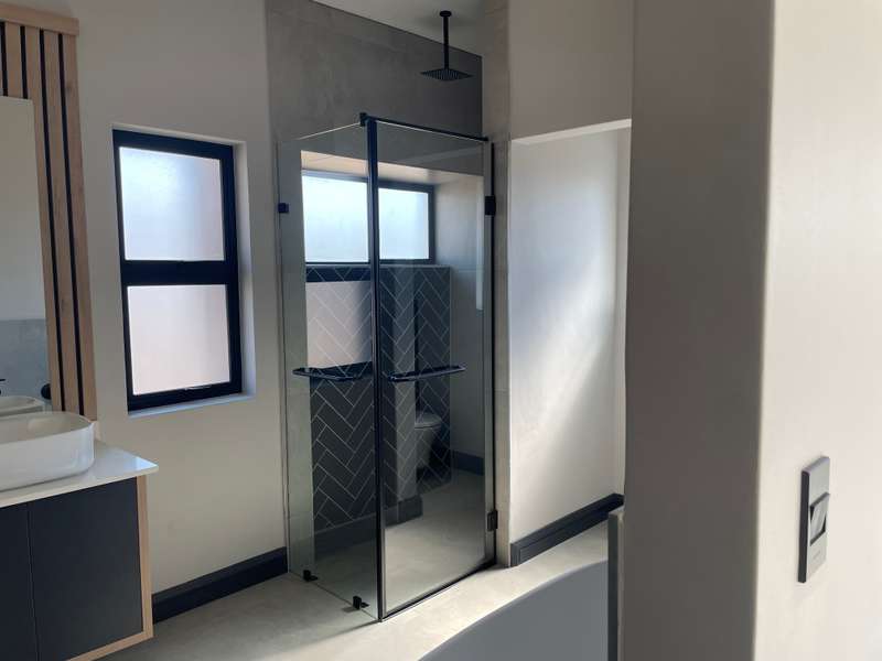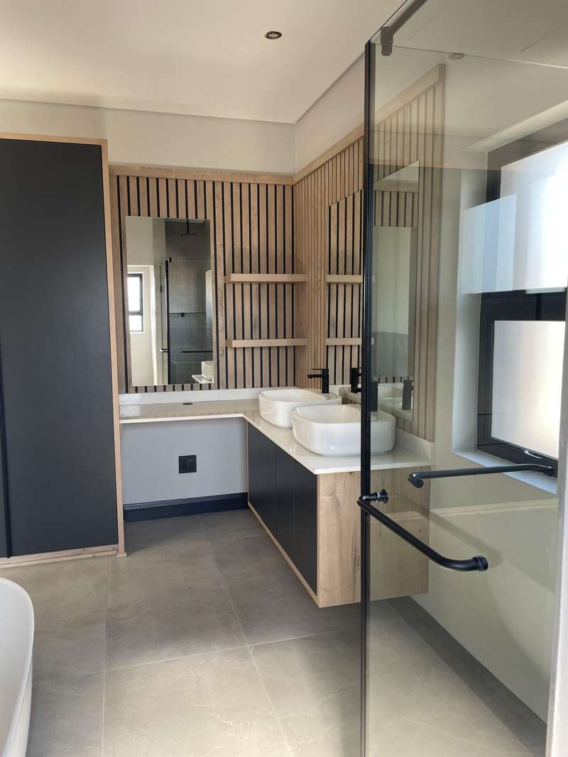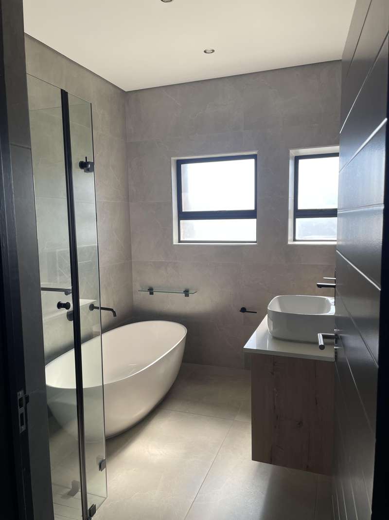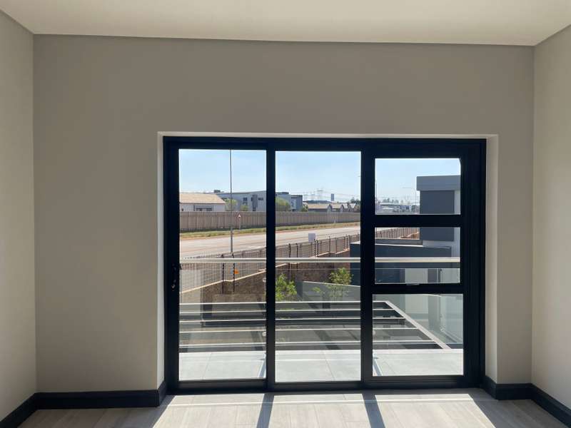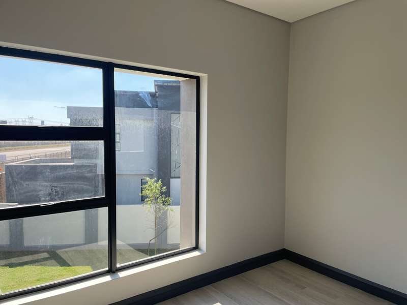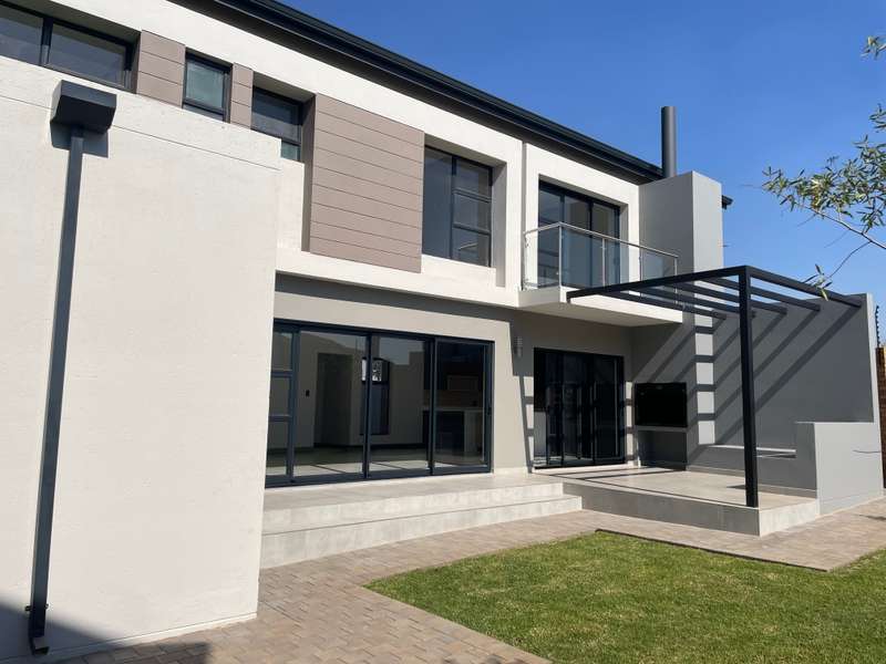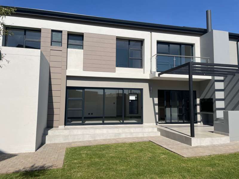This brand new home offers three generously sized bedrooms, each designed with comfort in mind. The master suite includes a luxurious en-suite bathroom and a private walk-in closet, while the additional bedrooms share a stylish full bathroom. Glass sliding doors lead to an inviting patio and private garden, creating the perfect space for outdoor relaxation and family gatherings. The home also includes a double garage, energy-efficient features, and top-tier security, ensuring a safe and comfortable lifestyle. Located within Fountainbrook Estate, residents enjoy 24-hour security, landscaped parks, and easy access to major highways, shopping centers, and schools. This exquisite home is the epitome of modern suburban living—don’t miss the opportunity to make it yours! Spacious open plan living area Built in braai with boma area High-end kitchen with separate scullery Private study area/nook Guest toilet 3 Bedrooms 2 bathrooms Double automated garage Communal swimming pool, clubhouse and braai facilities in Estate.