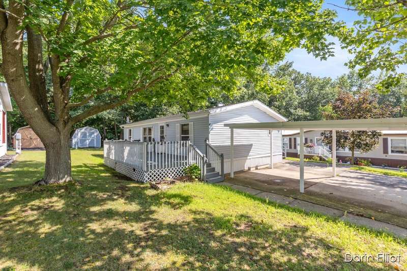 Affordable 3 Bed, 2 Bath home located in Ionia's very own and extremely desirable 55+ manufactured home community, Sherwood Forest. Home is mechanically sound with brand new water heater and new HVAC 2018. Roof was also replaced in 2018. All appliances included. Large side and rear deck. Huge carport and multiple sheds. Hurry to make this one yours today! Buyers must complete an application for community approval prior to purchase.