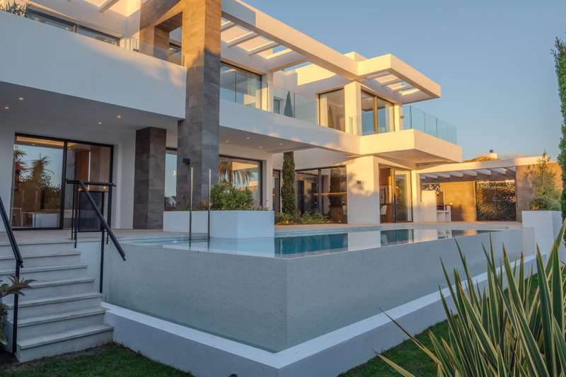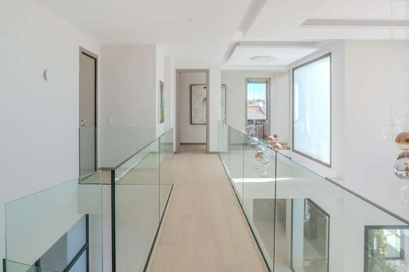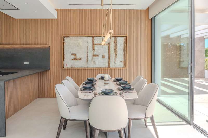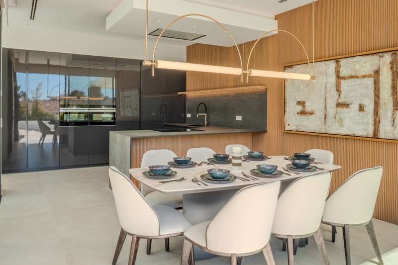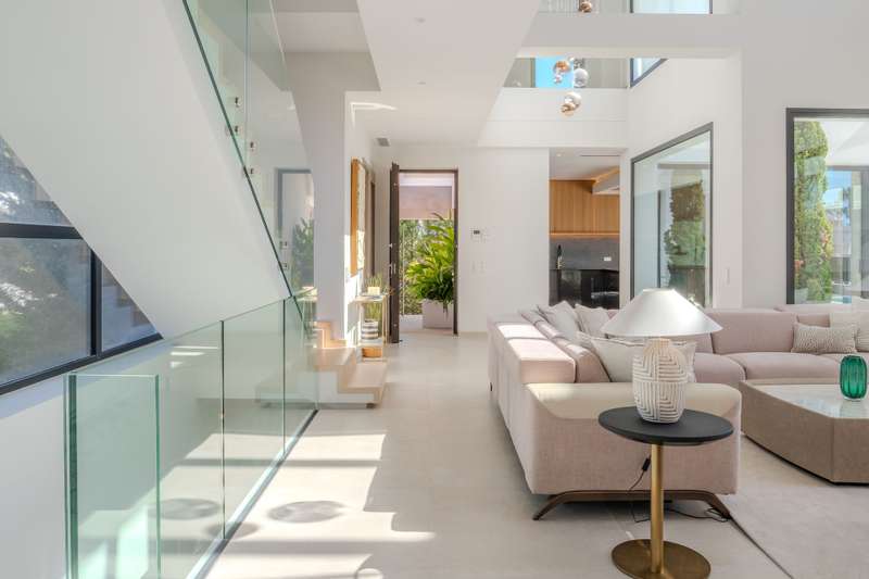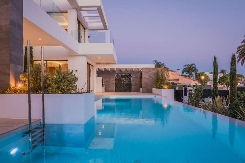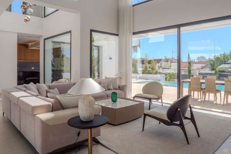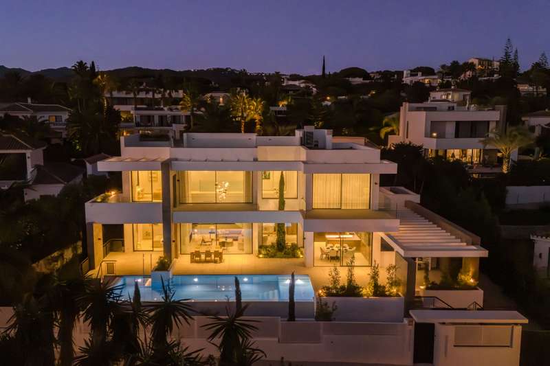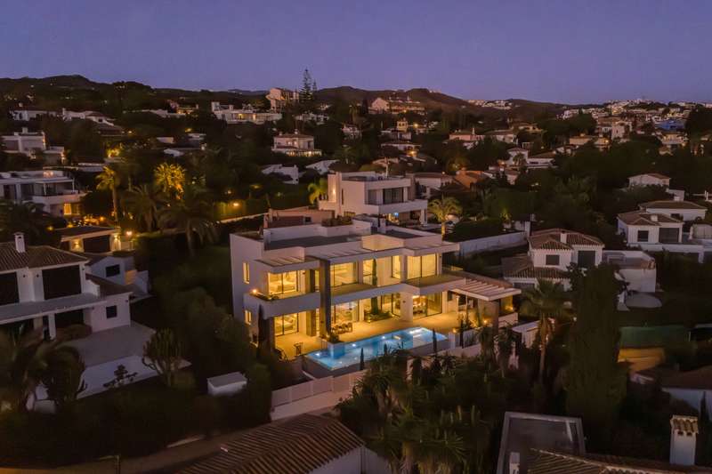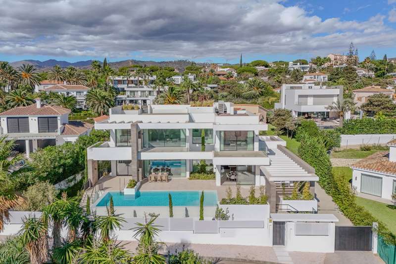 This exceptional modern villa represents the perfect 21st-century beachside home, ideally located in the prestigious residential area of Marbesa in Elviria, known for its tranquility, privacy and superb proximity to the sea, with the beach only 350 metres away. Designed for those seeking elegant living by the Mediterranean, it offers a harmonious blend of contemporary architecture, comfort and convenience in one of Marbella’s most desirable coastal neighbourhoods. Built on a generous plot of 779 m², the villa provides 390 m² of interior living space distributed across three levels, each crafted with a focus on natural light, open spaces and high-quality modern finishes. The architectural design enhances the sense of space and seamless indoor–outdoor integration. There is a pre-installation for a lift. The entrance opens into a magnificent living area with a stylish fireplace and an open-plan kitchen and dining zone equipped with top-quality appliances. Floor-to-ceiling sliding doors