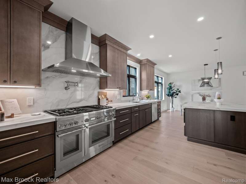 This stunning new construction home is located just steps from downtown Birmingham, a vibrant city filled with entertainment, shopping and fine dining. With 4500 square feet of living space the open floor plan is perfect for families and entertaining. There are 4 levels of finished living space including 5 bedrooms, 5 bathrooms, 2 powder rooms with a 2 car attached garage. The gourmet kitchen is a chef’s delight with premium appliances, quartz counters and a full back splash is open to the dining room and great room including one of 2 custom limestone fireplace surrounds. The den includes a second fireplace with custom glass doors & steel doors for privacy. There is a full walk-in pantry plus custom built in lockers with a bench and storage. Up one level the primary suite is magnificent with a large custom closet, luxurious private bath with a soaking tub, large shower, dual vanities with illuminated mirrors and natural light. The second floor office is spacious and perfect for working from home. There are 2 bedrooms with a jack and jill bath and another full ensuite and laundry room. The 3rd level includes an additional spacious ensuite with plenty of storage. The fully finished lower level offers and additional bedroom, full bath and second full kitchen opens to an entertainment area with a cozy fireplace. This custom built home is the perfect place to call home offering a combination of style, luxury and comfort. No detail has been spared.