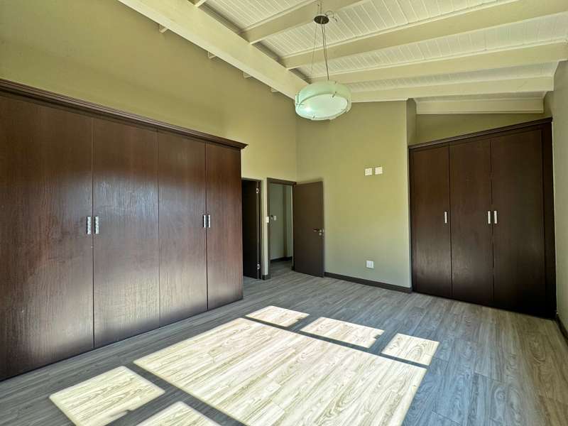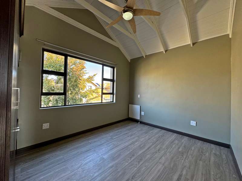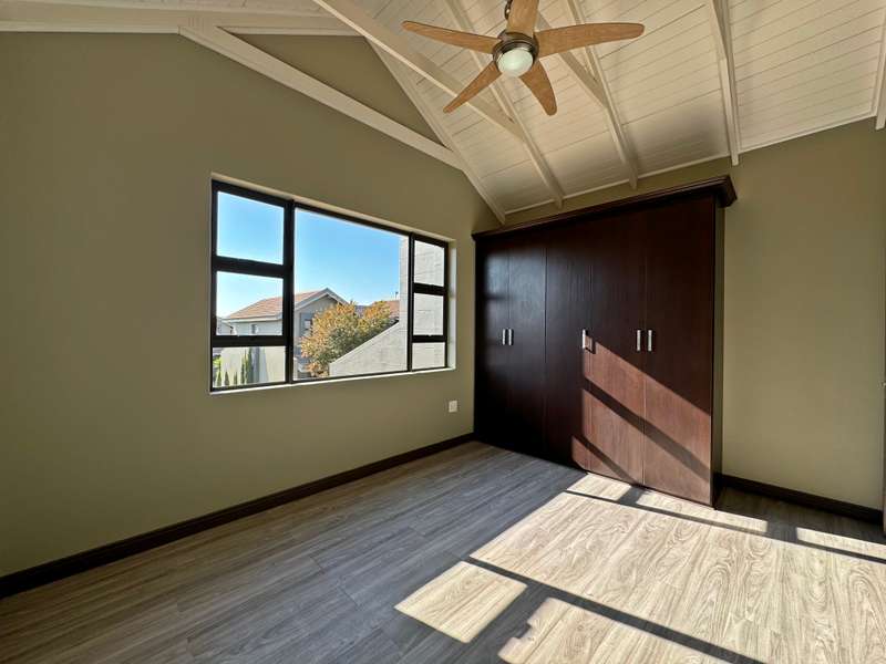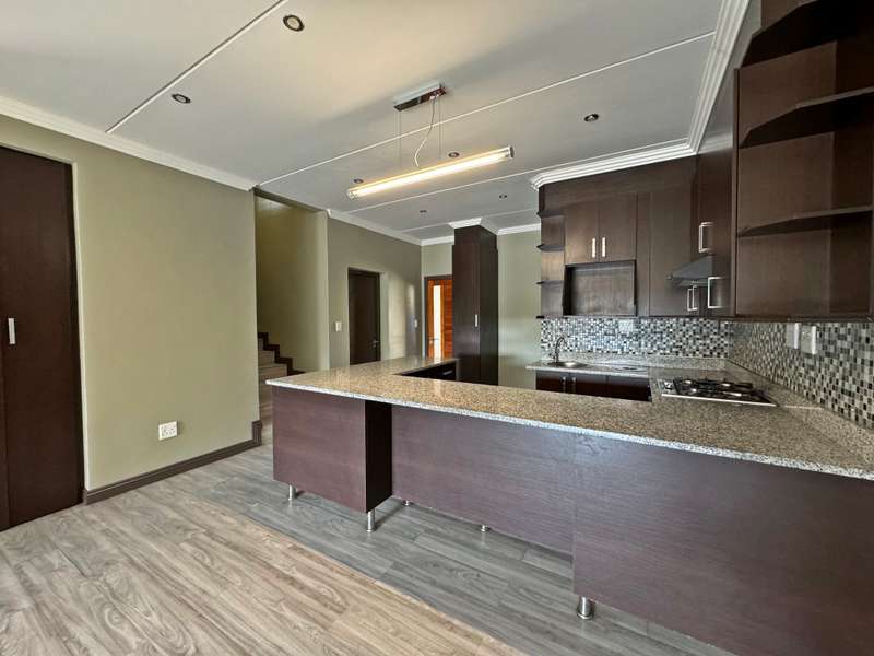 Discover the epitome of contemporary living in this exquisite double-storey townhouse, nestled within a highly sought-after complex. Step into a spacious and inviting open-plan living and dining area that sets the tone for stylish comfort. This area seamlessly flows into an entertainment room featuring a built-in braai and expansive stacking doors that open onto a meticulously landscaped garden. Perfect for entertaining or relaxing in harmony with nature, this indoor-outdoor space is designed for the modern lifestyle. The kitchen is a chef's delight, boasting sleek granite countertops, a gas hob for culinary precision, and a convenient scullery that ensures practicality without compromising on style. A well-placed guest bathroom on the main floor enhances convenience, catering to both residents and guests alike. The downstairs master bedroom offers a serene retreat with its own en-suite bathroom, ensuring privacy and comfort. Upstairs, two additional bedrooms share a full bathroom, complete with modern fixtures and finishes. Storage is ample throughout the home, accommodating all your organizational needs effortlessly. Stylish vinyl flooring and contemporary blinds adorn every room and living space, emphasizing the property's modern aesthetic and attention to detail. For added convenience, a double automated garage provides direct access to the house, incorporating a dedicated laundry area and supplementary storage options. This townhouse epitomizes elegance and practicality, offering a sophisticated yet comfortable lifestyle that's perfect for discerning homeowners. Call Annette Kasselman Today for a viewing.