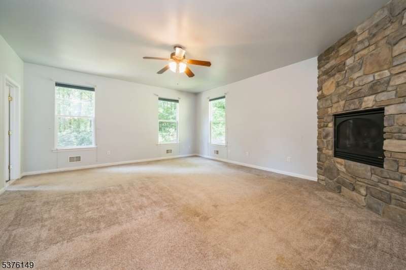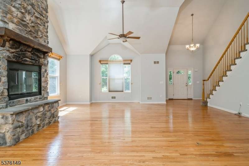 Custom-built Colonial nestled on nearly 6 private and secluded acres! This unique home features a spacious great room with a stunning wood-burning fireplace, soaring ceilings, and rich solid wood floors perfect for entertaining or cozy nights in. The great room flows into the kitchen and out to a massive deck through sliding glass doors, ideal for indoor-outdoor living. The first-floor primary suite offers its own gas fireplace, creating a warm and inviting retreat. Upstairs, you'll find three additional bedrooms and a bright open loft perfect for a home office, playroom, or reading nook. A 3-car garage provides plenty of space for vehicles, storage, or hobbies. A truly special home that blends rustic charm with modern convenience.