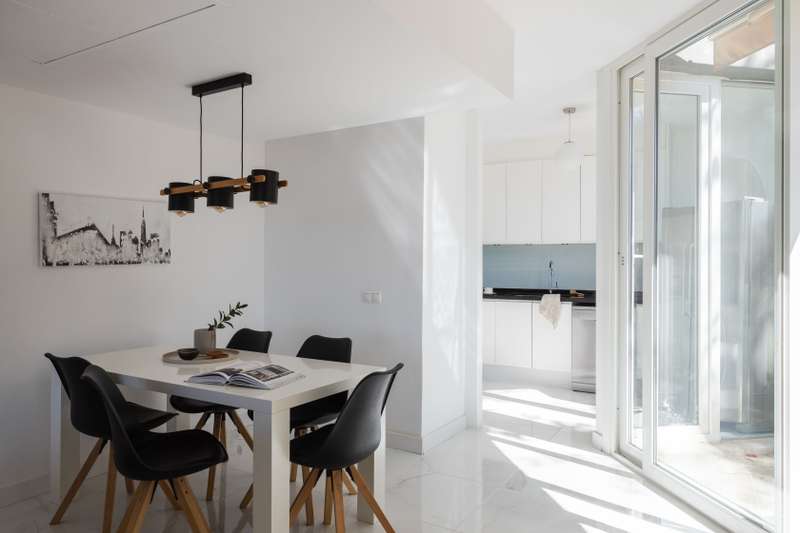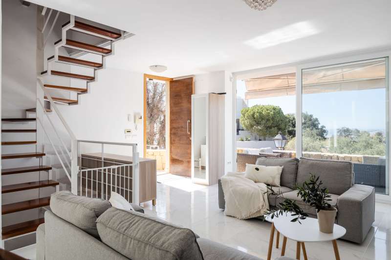 Welcome to explore this stylish, newly renovated house located in Torreblanca, Fuengirola. The house has four bedrooms, and its layout is designed to suit families, as the upstairs bedrooms are located close to each other. In this ready-to-move-in home, the interiors combine beautifully with the exteriors and terraces. The yard has its own plunge pool and a Finnish sauna, as well as direct access to the common infinity pool, which has wonderful panoramic views of the sea and the city. The entrance floor has a bright living room, a dining area and a fully equipped modern kitchen. Large sliding doors lead to the terraces. There is also a guest toilet. On the floor above there is a hall and two bedrooms, on the top floor there is a good-sized bedroom and an on-suite bathroom with a jacuzzi, shower and two sinks. The basement floor has one bedroom, for example for guests, and a two-car garage. This villa is conveniently close to amenities, hiking trails, sporting facilities and only a s