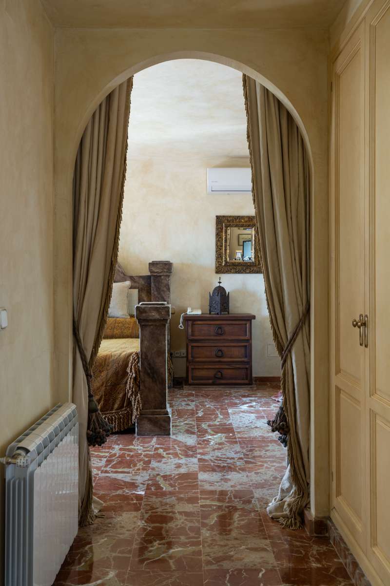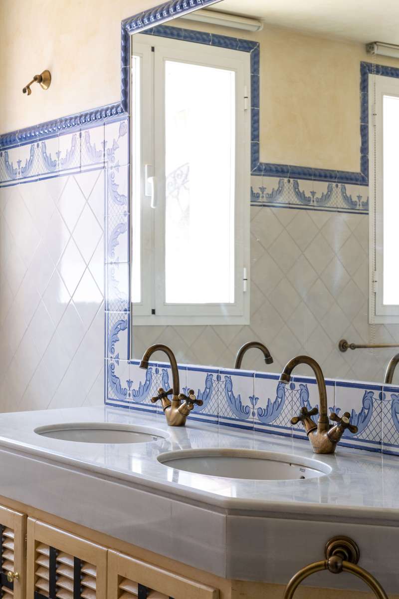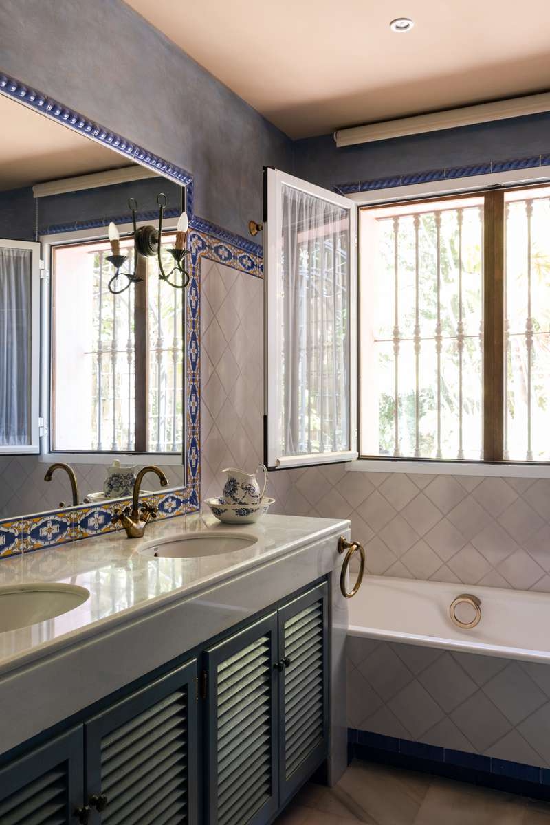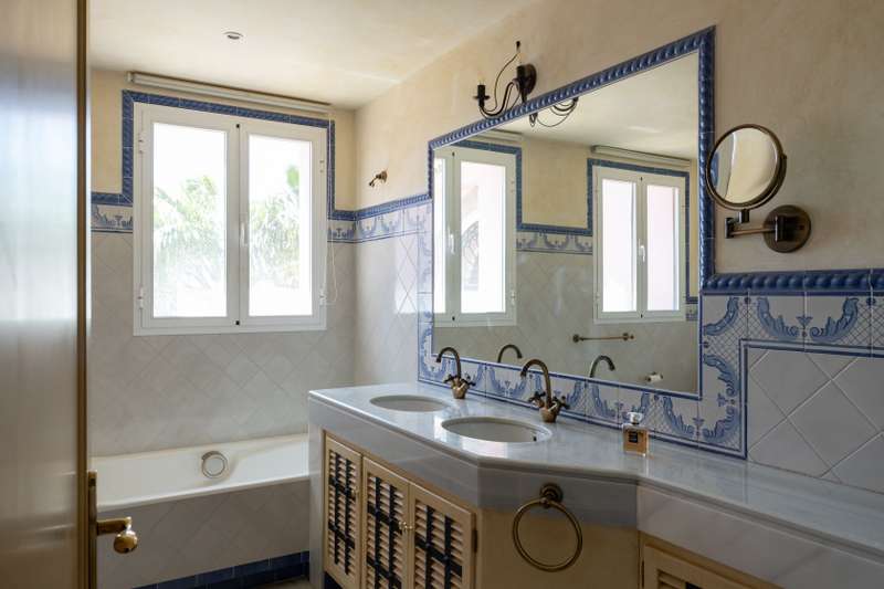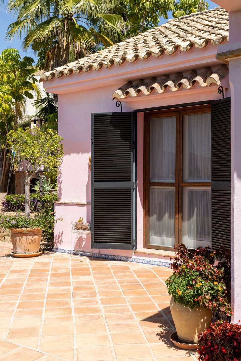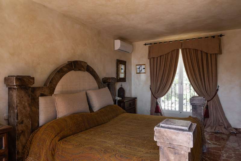 A truly stunning and traditional, Andalusian style villa designed by renowned architect Cesar De Leyva. This is a truly wonderful house situated in a small cul de sac within the much sought after Urbanisation Puerto del Almendro. This stunning home offers absolute peace and privacy where you can enjoy spectacular views of the golf course with the mountains as a back drop with views across the Mediterranean sea and on a clear day Gibraltar and Africa. The villa was built by the current owner as a much loved family home and is distibuted over two floors with a double height entrance hall and spacious rooms offering plenty of natural light throughout the house and fireplaces creating a warm and inviting atmosphere. The property opens onto a manicured garden with a private pool , pretty terraces and a wonderful courtyard with a fountain, there are plenty of outside spaces to relax and bask in the glorious sunshine which this south west facing villa benefits from. You enter the ground