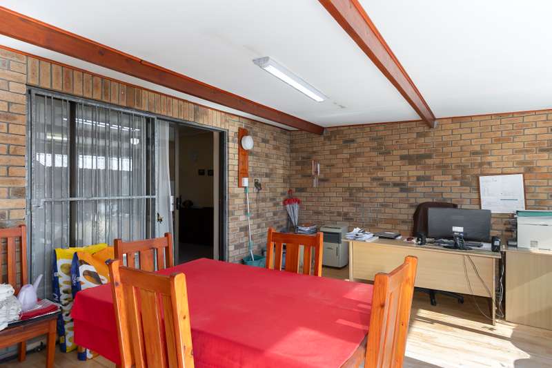 SOLE MANDATE Situated in the quiet suburb of Dobson this property offers the opportunity to be a comfortable family home or an income generating investment. The main house has 2 spacious bedrooms with a shared bathroom, an open plan kitchen with a scullery, a formal sitting room and a large sun room opening onto the garden. The original double garage was converted into a two roomed flatlet with a bathroom (shower only) and has direct access to the main house, enabling conversion to a 4 bedroom home. The property has a low maintenance face brick exterior, is fully walled and has a carport that can accommodate 2 cars. Burglar bars and security gates are fitted at all the windows and doors. The garden is big enough to be comfortable and small enough to maintain without effort. Included in the sale are 2 wendy house/storage units. This property is filled with potential and waiting for a person with vision to transform it. I look forward to showing it to you.