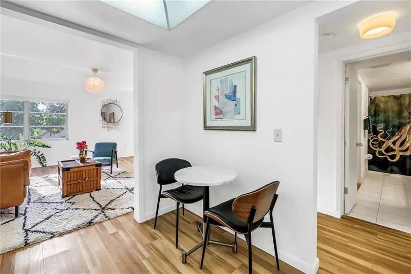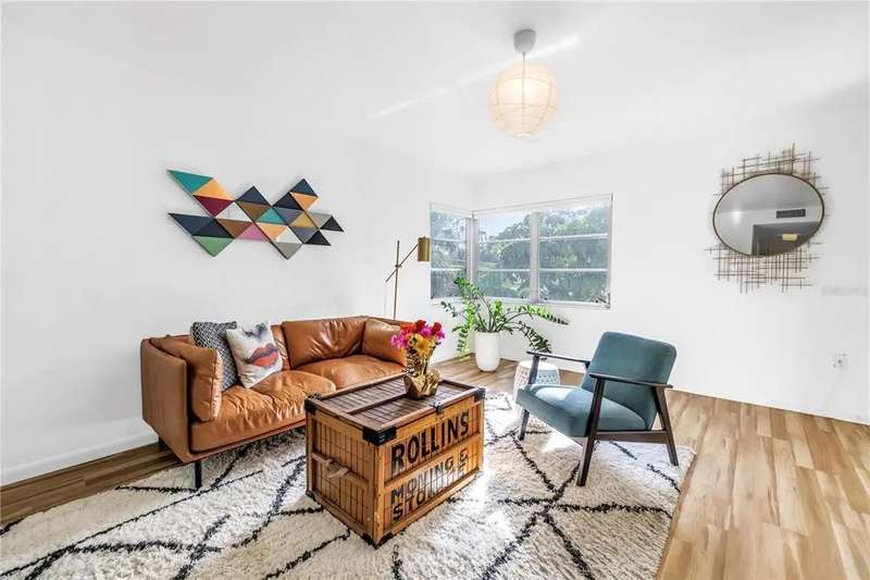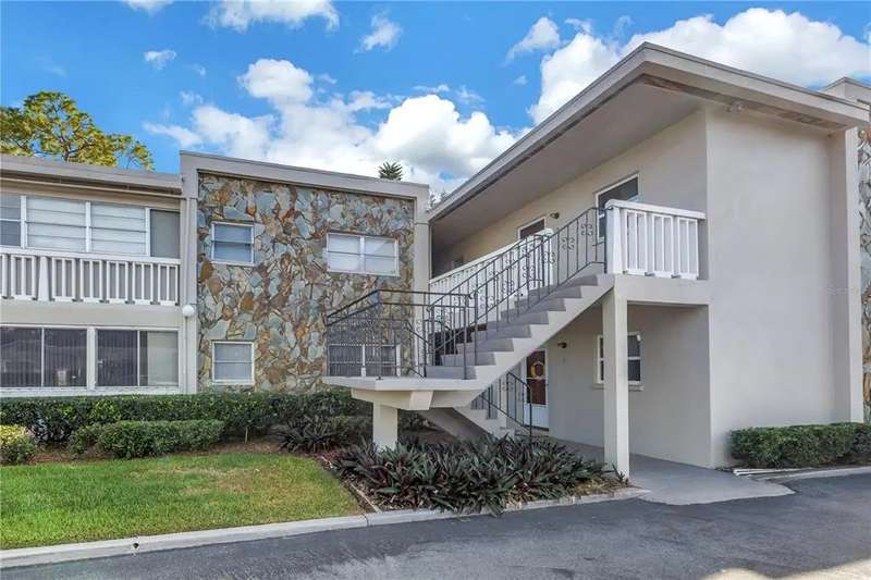 Come discover this furnished hidden gem in North St. Petersburg, perfectly situated next to Fossil Park and overlooking a peaceful lake. Located in Park View, a beautifully landscaped and well-maintained 17-unit 55+ community. This second-floor condo offers unbeatable access to shopping, restaurants, the public library, and major interstates. Plus it’s just 15 minutes from downtown St. Pete, Tampa, and Clearwater. As you enter the unit, you're greeted by a bright kitchen just off the entryway, featuring a gas range and functional layout. Beyond the kitchen, the cozy living area is filled with natural light, creating a warm and inviting space to relax or entertain. The generously sized bedroom offers direct access to the full bathroom, and a charming sunroom provides a flexible bonus space; perfect for a reading nook, office, or guest area. Additional highlights include a brand-new roof (installed September 2025), gas included in the monthly fee (which covers heating in the winter), on-site laundry and storage on the ground floor, central A/C and heat, laminate flooring, and one assigned parking space.