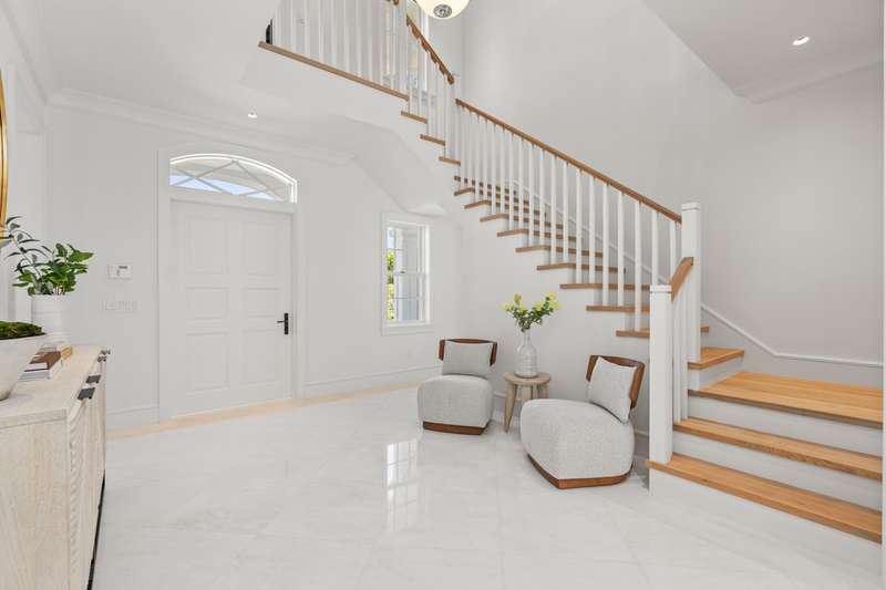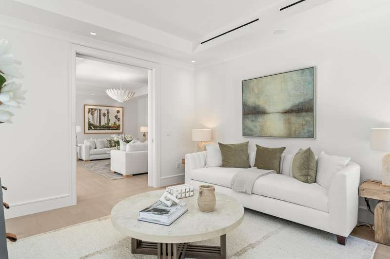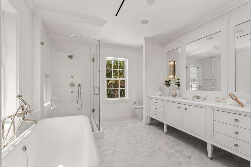 A ''PALM BEACH'' architectural gem has just been completed and is move-in ready. This exquisite home is south facing and includes a wonderful separate guest house overlooking the swimming pool. With over 5,700 sq. ft., there's a total of 4 bedrooms and 6 and 1/2 baths, all with WaterWorks fixtures. Stunning details include vaulted and trayed ceilings, white oak floors and beautiful millwork creating a luxury experience. This light filled home includes a separate library, dining room, eat in kitchen and outdoor covered loggia all of which are ideal for entertaining. The master bedroom has separate his/her closets and bathrooms with an oversized private terrace. Additional features include an elevator, an oversized 2 car garage and a full house generator. Landscape was designed SEE MORE:
