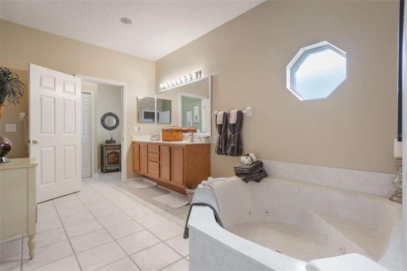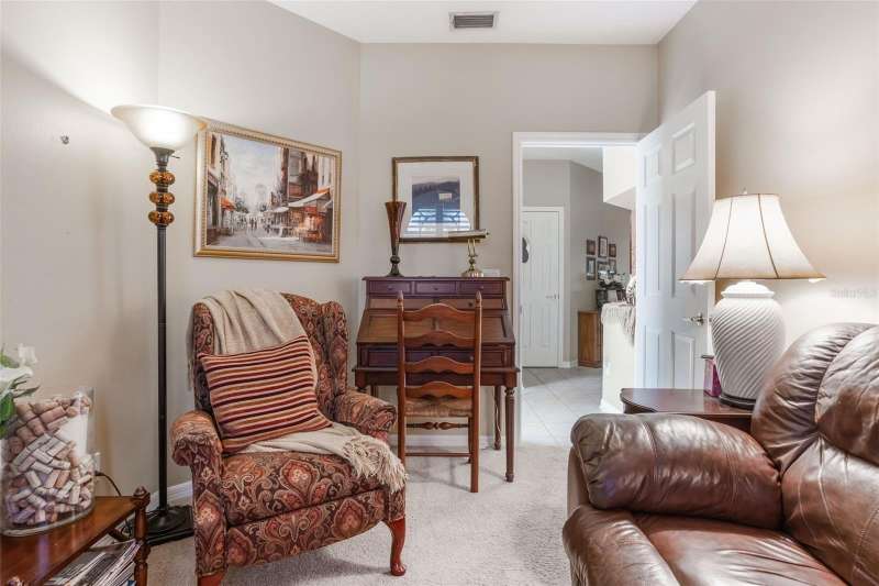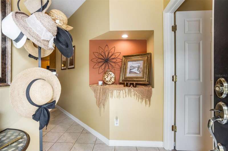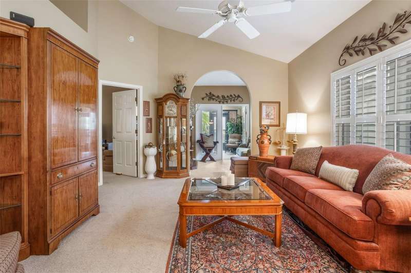 Beautiful Home in the Saint Andrews Area of the Country Club of Mount Dora. Pride of ownership is evident throughout this well-maintained home, located in the highly sought-after Saint Andrews neighborhood of the Country Club of Mount Dora. Offering nearly 1,900 square feet under heat and air, this residence boasts excellent curb appeal with an upgraded driveway, walkway, and a private courtyard entry. Inside, you'll find a spacious and open floor plan that seamlessly connects the kitchen, dining area, and living room—perfect for entertaining or relaxed Florida living. High ceilings, plantation shutters, elegant light fixtures, ceiling fans, and a built-in surround sound system enhance the home's style and comfort. A versatile 12x20 bonus room currently functions as a home office and gym. There is an additional Florida room. The primary suite features a large walk-in closet, dual sinks, a shower, and a luxurious jacuzzi tub. Step into the enclosed back porch for year-round enjoyment, conveniently located off both the bonus room and living room. Recent updates and upgrades include: • Hurricane screens (2024) for peace of mind • A/C system replaced in 2022 • Refrigerator (2021) and hot water heater (2014) • Newer garage door opener, reinforced garage doors, privacy fence, and gutters. Enjoy a low-maintenance lifestyle with lawn care included in the monthly HOA fee. Community amenities exclusive to Saint Andrews/St. Ives residents include a pool, fitness equipment, and private clubhouse. This is Florida living at its finest—come and see for yourself what makes this home so special!