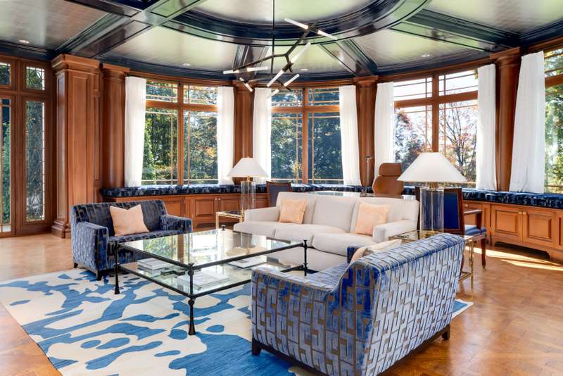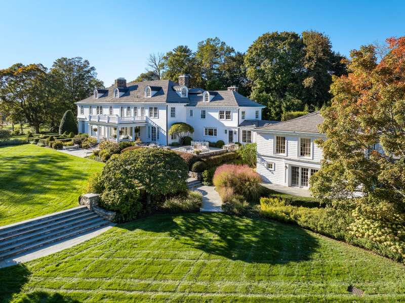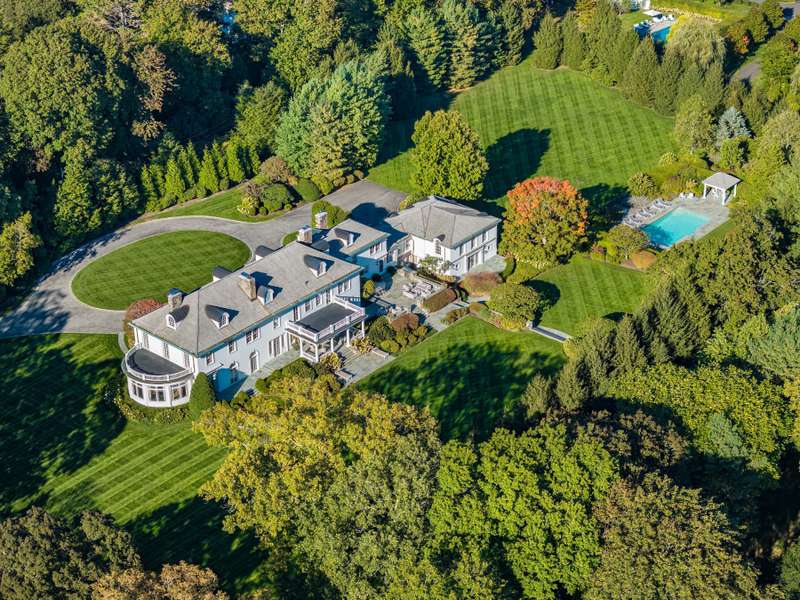 Set on one of New Canaan's highest elevations, this iconic country estate offers a rare combination of architectural distinction, modern functionality, and understated luxury. Exquisitely restored by renowned architects Wadia Associates, the 14-room manor balances timeless design with contemporary ease. A grand reception hall introduces a sequence of formal rooms with soaring ceilings, curved glass windows, lacquered finishes, and classic French doors that open seamlessly to the outdoors. At the heart of the home, the Smallbone of Devizes kitchen with walls of Calacatta marble and top-tier appliances flows seamlessly into a light-filled family room overlooking four stunning sculpted acres. The primary wing, is a private retreat of more than 1,100 square feet, featuring a spa-style bath and expansive dressing room. Four additional en-suite bedrooms graciously complete the second floor with an additional spacious & sunny room/office on the third floor. Thoughtfully equipped as a smart home, the property places technology and convenience at your fingertips. Outside, landscaped grounds unfold with an expansive terrace, covered porch, heated pool, and cabana-an environment designed equally for quiet weekends or refined entertaining. Every detail reflects a commitment to craftsmanship and lifestyle, creating a residence that is both stately and livable. This is New Canaan at its most elevated-a rare opportunity to own a property where design, privacy, and comfort converge.