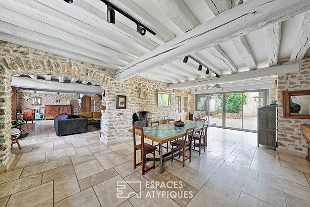 Just 10 minutes from Barbizon and 20 minutes from Fontainebleau, in an authentic and sought-after village, hides this magnificent property full of character, resulting from the rehabilitation of an old farmhouse. Entirely redesigned for modern family life, this 245sqm building is organized around three buildings and in the heart of a bucolic 1400sqm garden, quiet and not overlooked. From the entrance, the tone is set: noble materials, old fireplaces, exposed stone. The charm of the old is combined with a layout designed for everyday comfort. The main house with 180sqm is arranged on two levels: The ground floor accommodates an entrance to the cloakroom, a vast eat-in kitchen with a dual-aspect fireplace, opening onto a bright double living room with a second stone fireplace. This warm living space opens directly onto the courtyard and the garden, perfect for children or summer evenings with friends. A bathroom is added to the ground floor. Upstairs, accessible by two staircases, are: - Two bedrooms connected by a shower room, - A master suite with dressing room and bathroom, - A bathroom. In the extension of the building, an annex of 34sqm is ideal for creating an office, a games room or an artist's studio. At the back of the courtyard, a charming guest house of 30sqm offers a living space with kitchen, a bedroom and an office on the mezzanine, a shower room, perfect for welcoming family, friends or even launching a seasonal rental business. The: - Two beautiful vaulted stone cellars for wine or history lovers - A closed garage and a laundry room A6 access 5 minutes away, without any nuisance Schools in the village and all amenities nearby Ideal for a family looking for a peaceful daily life, close to nature, without giving up the professional and cultural life of Paris. ENERGY CLASS: D / CLIMATE CLASS: D. Estimated average amount of annual energy expenditure for standard use, established from energy prices for the years 2021, 2022 and 2023: between 3670 euros and 5040 euros. Contact: Iza GABOUA - 06 66 90 92 59 RSAC: 831 884 689 MELUN