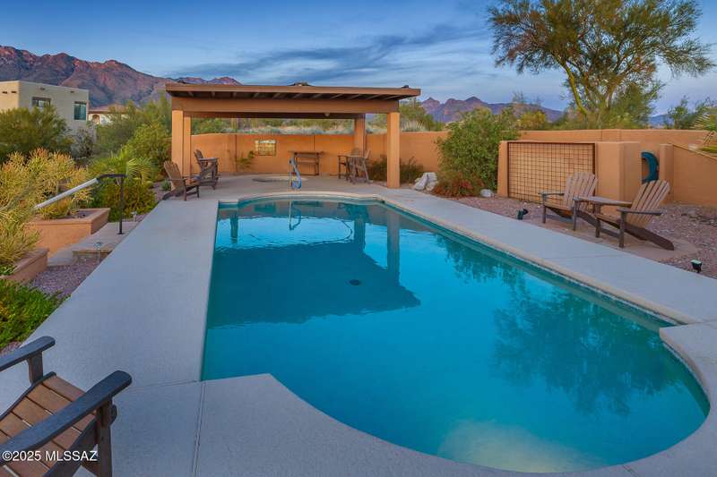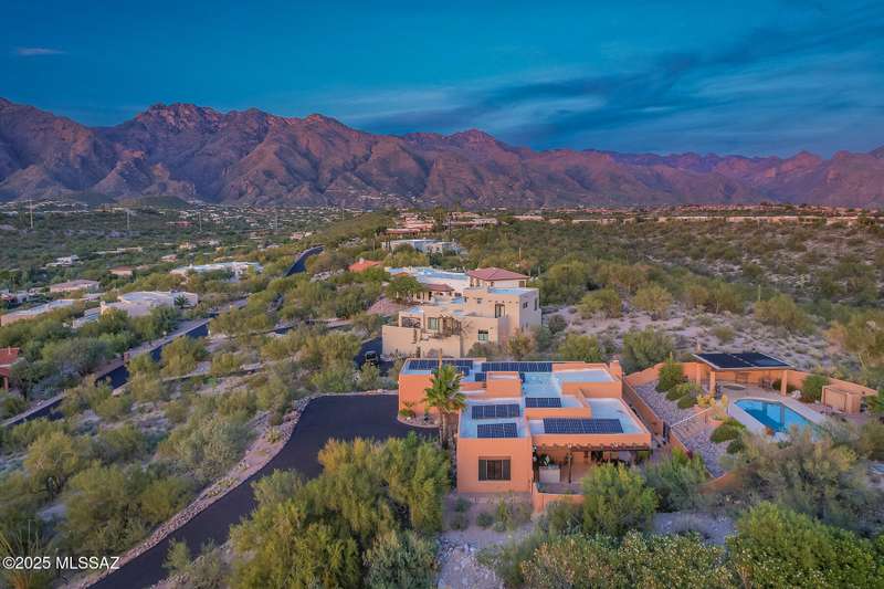 This Foothills home commands 360-degree panoramic views of the Santa Catalina Mountains, Tucson Valley, and endless desert skies. Experience the essence of desert luxury in this modern solar-powered home. With 2,600 square feet of impeccably designed living space, this 3-bedroom, 2-bath residence offers an unparalleled combination of sophisticated style & energy efficiency. Designed to maximize natural light and scenery, the home features expansive windows and glass sliders that seamlessly blend indoor and outdoor living. From its Santa Fe architecture to its private pool and chef's kitchen, every detail of this home captures the beauty, tranquility, and effortless sophistication that define the Tucson lifestyle. Perfectly situated near top-rated schools, shopping & outdoor recreation