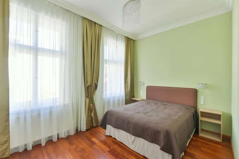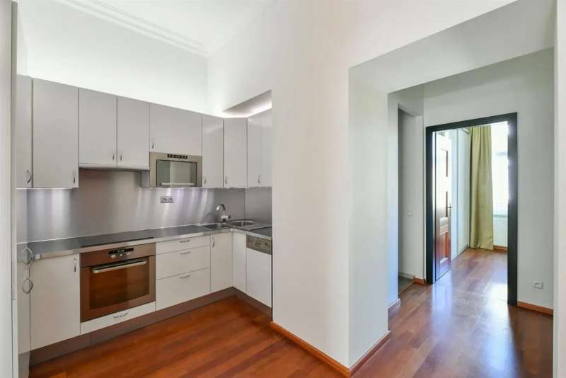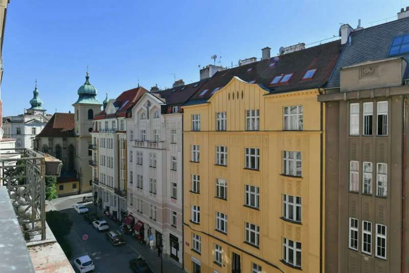 Located on the 5th floor of a renovated building with an elevator, this apartment offers a tranquil escape just steps from the vibrant Pa?ižska Street and the Vltava River.