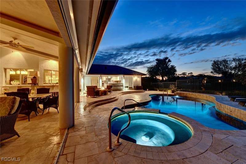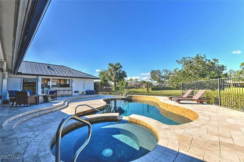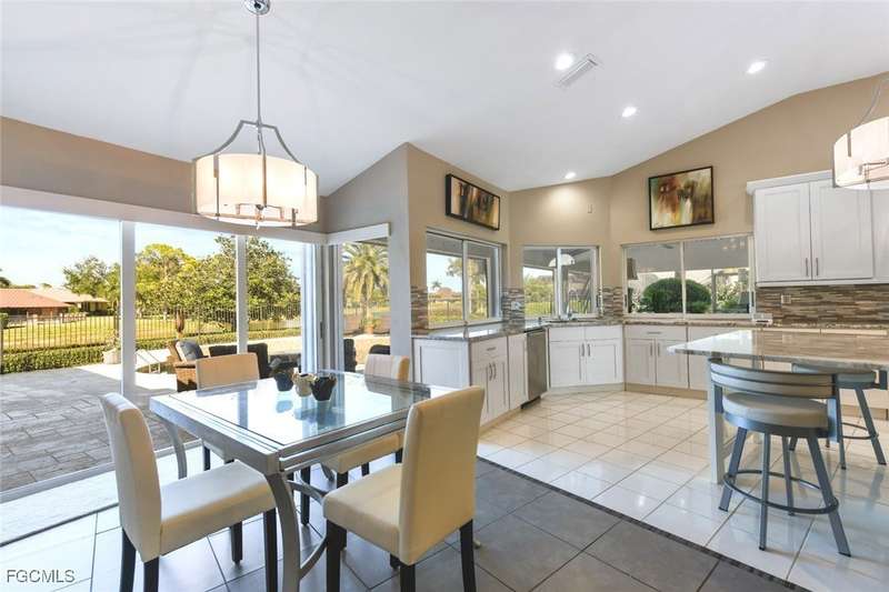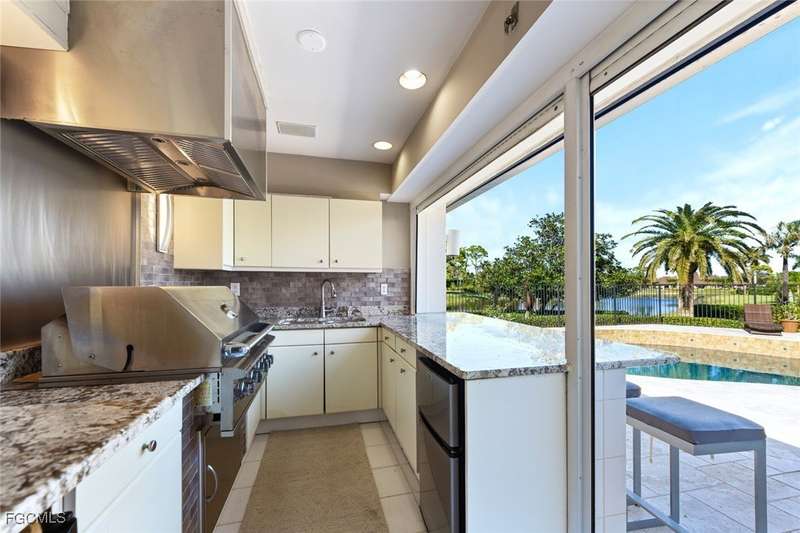Stunning estate home with the WOW factor that sits on over a half-acre lot, offering plenty of privacy, lots of natural light and within easy walking distance to the clubhouse. Enjoy your morning coffee while watching the wildlife along your lovely lake view. Then have fun entertaining your friends and family pool side in the evening on the lovely lanai w/plenty of dining & lounge space with large outdoor kitchen featuring Paradise gas grill, stainless hood, granite tops, double sink, two mini-refrigerators. You will love the gourmet kitchen with popular open floor plan to the main living area. Kitchen features stainless steel appliances, 6-burner gas cook top with griddle and double oven, brand new microwave, granite tops, huge prep island w/ breakfast bar, Traulsen wine cooler with 120 bottle capacity, full wet bar with custom mirror and lighting. The luxury owners suite features spacious walk-in closet with built-ins and custom glass French doors, Sohji window blinds over the sliders, large walk-in shower, soaking tub, vanity, dual sinks, and new impact glass windows in master bath. All bedrooms are ensuites with walk-in closets. Other special features of this home include heated pool and spa, full pool bath, newer metal ROOF(2023), Kohler whole house GENERATOR, hurricane shutters, fireplace, tankless water heater, Ring system that stays w/the home, oversize 3-car garage (with option for AC), 500 gallon buried propane tank, lush landscaping and landscape lighting. The very low density club of Fiddlesticks features 36 holes of championship GOLF, practice range, short game practice area, 2 practice putting greens, eight lighted Har-Tru tennis courts, six pickleball courts, bocce ball, dog park, staffed fitness center, resort-style pool with lap lanes, cabana & clubhouse, full social calendar. Equity fee due at closing. Some furnishings are negotiable outside of closing. Long list of all updates in attachments. NO WAIT LIST FOR GOLF HERE!!