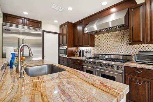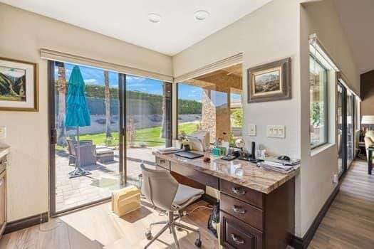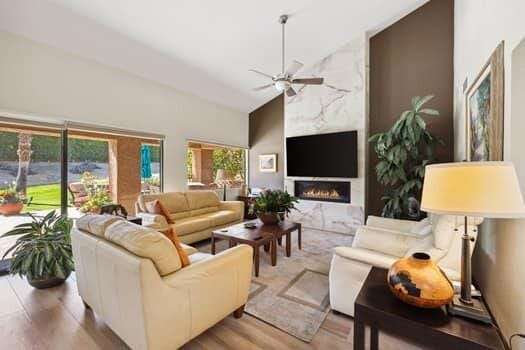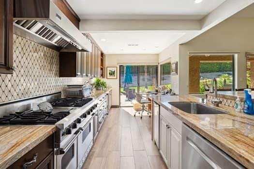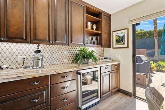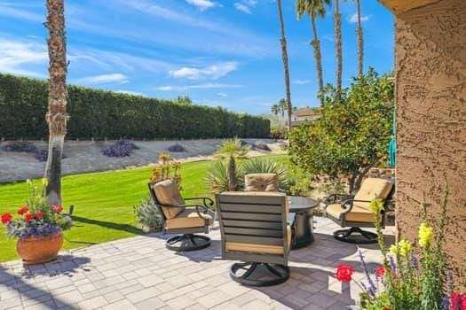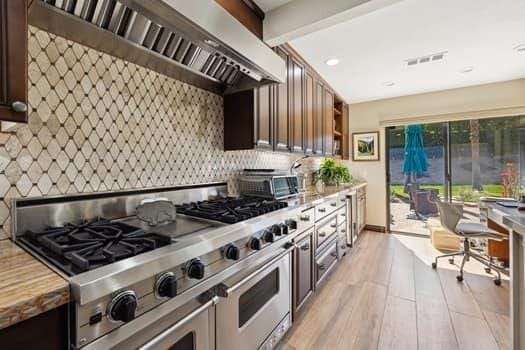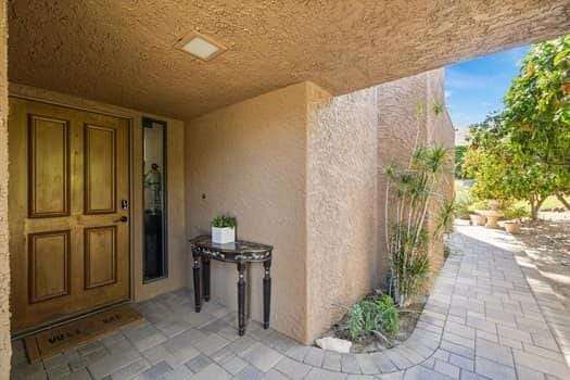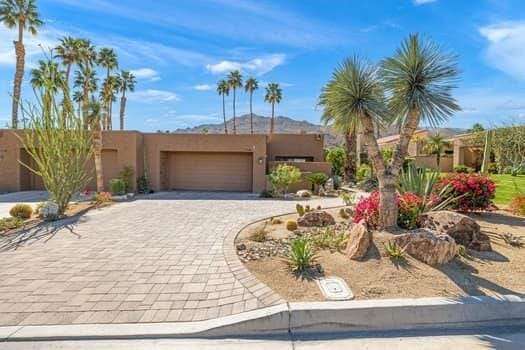 Situated in a prime cul-de-sac location near the Clubhouse, this home exudes quality and careful attention to detail. Blending the latest finishes and craftsmanship. The end result is a place to be proud of. Strategically situated with awe inspiring views of the golf course and the mountains beyond. While relaxing on the huge patio, you can enjoy the firepit and natural gas BBQ. This all private and secluded. This well thought out extensively remodel was meticulously carried out. The 6 burner Viking gas stove includes a griddle. It looks well near the Viking stainless steel refrigerator. There is a walk-in panty with ample space. The soft-tone wood design tile floor are soothing. Nothing was overlooked. Dazzling finishes. The main bath now incorporates a Jacuzzi tub with jets and shower for all your needs. Ample storage is available in the walk-in closet. The wine cooler allows for gracious guest entertaining. The fireplace was redone with a new insert and porcelain tile treatment. Upgraded lighting to set the proper mood for every moment. Even the garage was treated to a new 'rock' floor. The extra long driveway that works well for guest parking and entry walk way have nicely designed paverstones.