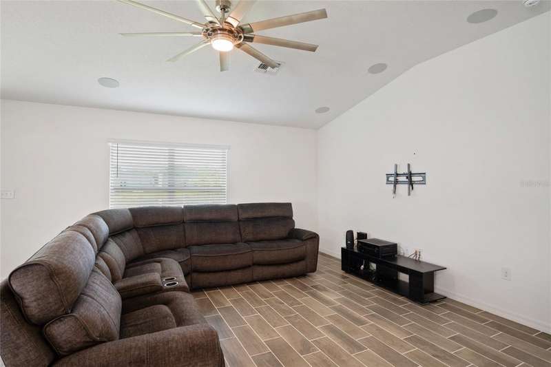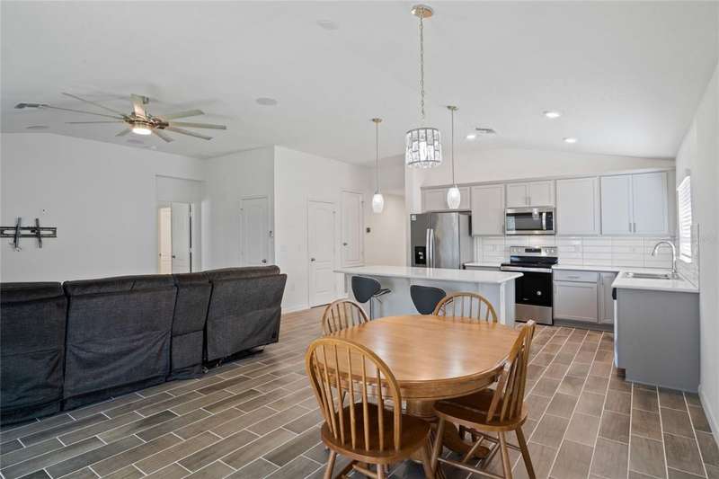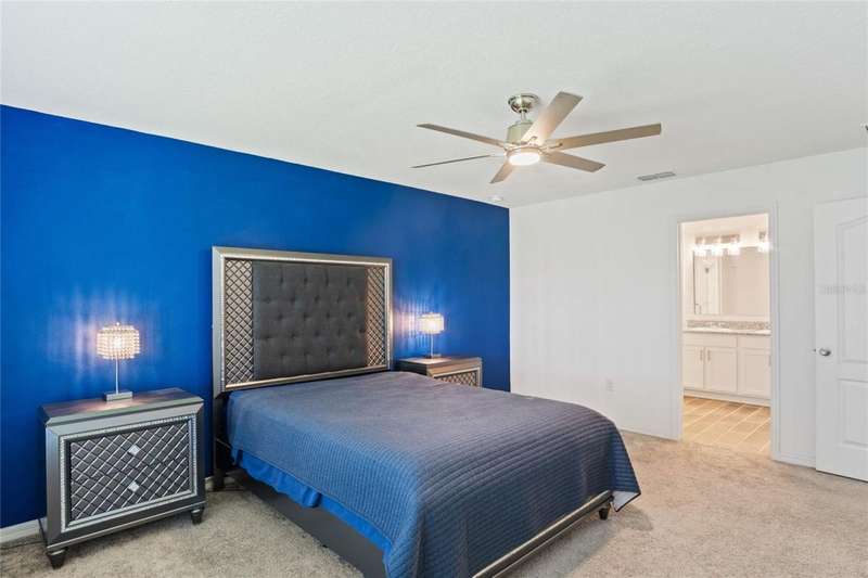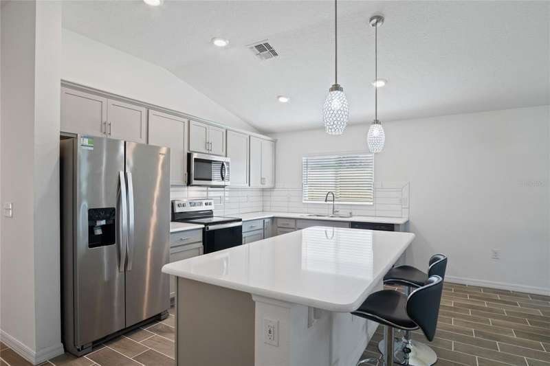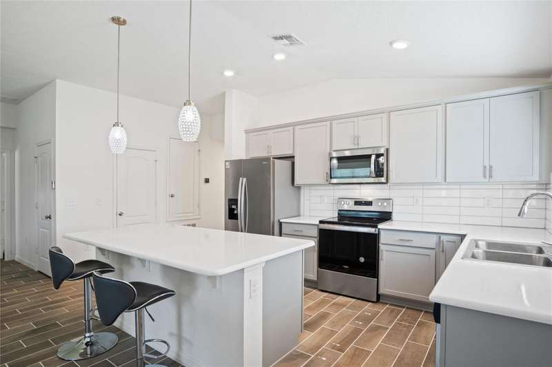 Seller is offering $5,000 in Concessions! Welcome to your dream home in the sought-after community of Tivoli Reserve in Davenport, Florida! Situated on a fenced corner lot with serene pond frontage, this beautifully maintained 4-bedroom, 2-bathroom home offers the ideal combination of comfort, space, and convenience. Step inside and you'll immediately appreciate the care and updates throughout - including new wood plank tile flooring in the main living areas and plush carpet in the bedrooms. The spacious open floor plan seamlessly connects the kitchen, dining, and family room, making it perfect for entertaining or everyday living. The kitchen is a standout with quartz countertops, stainless steel appliances, and a large island with pendant lighting, all enhanced by recessed lights and natural sunlight. Just off the dining area, relax on the covered and screened patio, ideal for enjoying your morning coffee or unwinding at sunset with peaceful water views. The backyard is generously sized with room to add your private pool, and the vinyl fence makes it perfect for pets and play. Retreat to the primary suite, where a glitter-accented feature wall adds a touch of magic. The ensuite bathroom features a double vanity, a spacious shower with built-in seating, and a walk-in closet. The three-way split bedroom plan offers privacy for all, and each bedroom includes a ceiling fan for added comfort. Additional features include a guest bathroom with ample counter space and a tub/shower combo, and a stylish laundry room with a new washer and dryer that makes everyday chores feel like less of a task. Tivoli Reserve residents enjoy access to a community pool and playground, and you'll love being just minutes from Central Florida's world-famous attractions, shopping, dining, golf, and more. Whether you're looking for a forever home or a vacation retreat, this property has it all - location, lifestyle, and livability.
