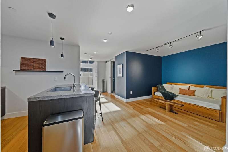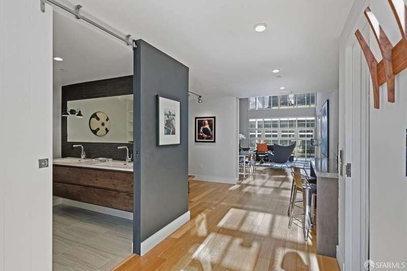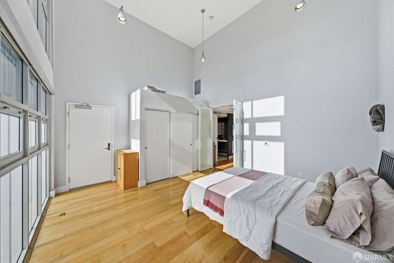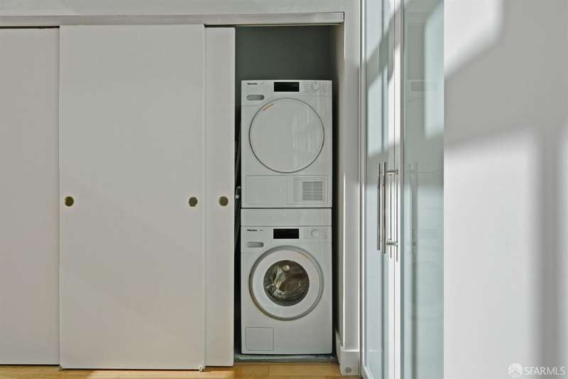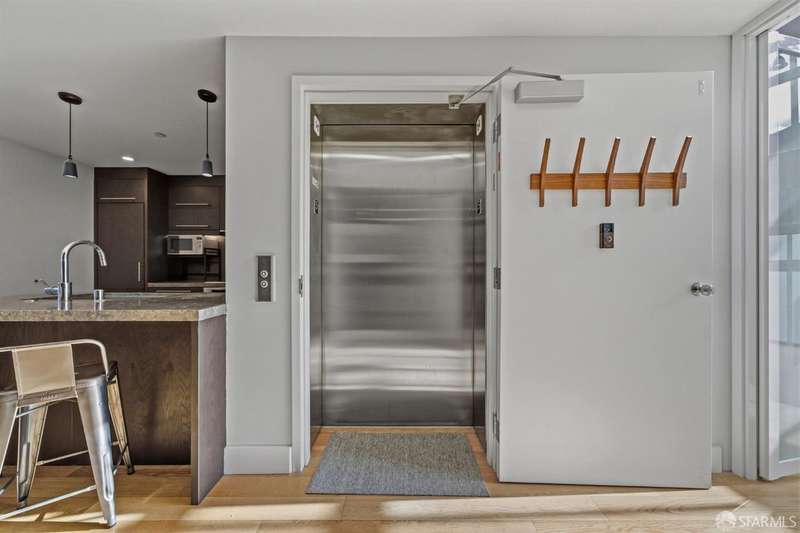 A distinctive blend of texture, warmth, and architectural elegance by renowned architect Stanley Saitowitz. This remarkable full-floor penthouse offers a perfect balance of modern sophistication and timeless comfort. Completed approximately fourteen years ago, the residence features two beautifully appointed bedrooms plus a separate office/den. The primary suite includes an Elfa custom closet and a spa-inspired bath with an oversized shower. A private elevator opens directly into the home, revealing soaring ceilings, floor-to-ceiling windows, and refined oak floors with radiant heat. The sleek, contemporary kitchen anchors the open living space with generous counter area and ample storage ideal for both daily living and entertaining. The dramatic living and dining area opens to a private deck, perfect for morning coffee or evening gatherings. Additional highlights include custom window coverings, in-unit laundry, and access to a rooftop deck with sweeping downtown views. Steps from Salesforce Tower and the Transbay Terminal, surrounded by cafs and fine restaurants, this is sophisticated city living at its finest.