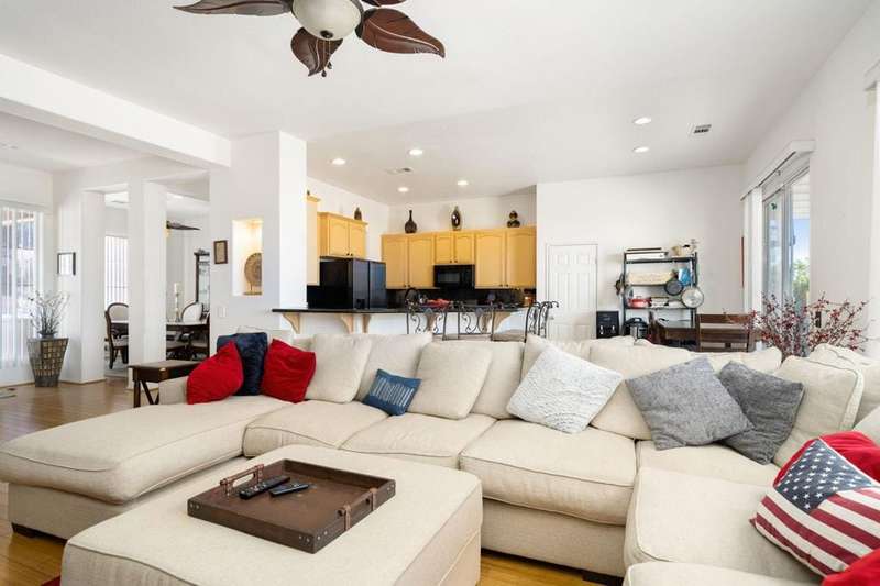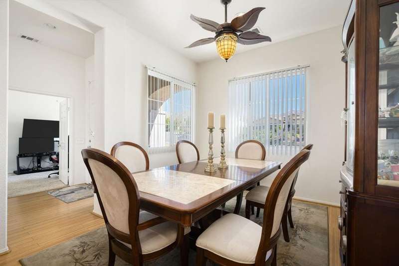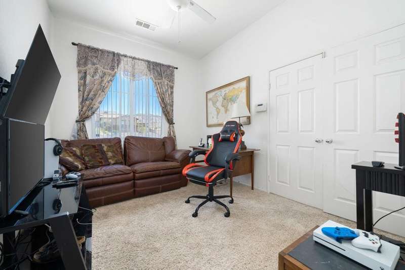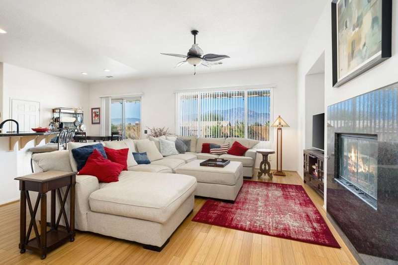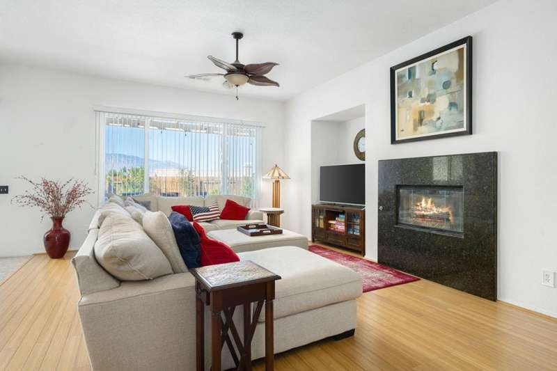 Welcome home to Hacienda Heights, an upscale subdivision close to shopping and restaurants. Enjoy mountain vistas from the covered patio. Quiet interior location in the complex away from traffic. This home has a versatile great room floor plan, with mountain views from the main living area and primary suite. Take off the chill on cool evenings with the granite faced fireplace. 3 spacious bedrooms plus a den/office for the growing family. Kitchen upgrades include slab granite counters and newer appliances. Guest bath has been upgraded with a solid surface counter, designer sinks and fixtures and a custom shower surround. Tile or bamboo flooring in the main living areas. Decorated in warm neutral colors. This well-maintained home has energy efficient upgrades that include a newer HVAC system, ceiling fans and an evaporative cooler for the primary suite. A newer water heater was recently installed. Entertain in the spacious backyard with mountain views under the extended covered patio. Lots of room to expand with a pool and spa. Potential RV parking in the spacious side yard. The driveway features extra parking spaces. Low maintenance yard has the irrigation system installed and is waiting for the new owner's creative touch. Close to shopping, restaurants and schools. Newer water heater and an evaporative cooler for the primary suite. Entertain in the spacious backyard with mountain views. Potential RV parking in the spacious side yard. Driveway features extra parking spaces. Low maintenance yard has the irrigation system installed and is waiting for the new owners' creative touch. Close to shopping, restaurants and schools. Julius Corsini Elementary School is a few blocks away. Contingent upon buyers finding a replacement home.