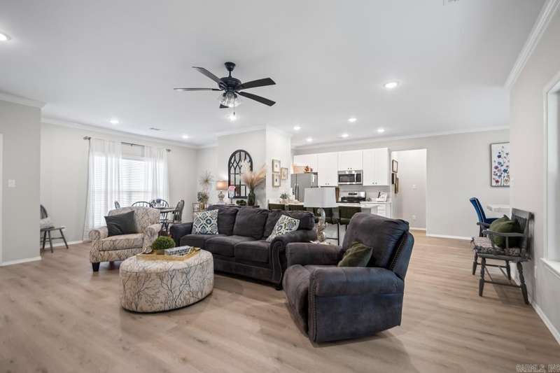 Still Like NEW! But you have a privacy fence, faux wood blinds & gutters that have been added! Such a precious place to call home!! You will find 4 bedrooms two full baths and a very spacious great room & kitchen! Great Room is super sized! Kitchen features stainless steel appliances & a pantry!! Fabulous primary suite with an amazing walk in closet!! All bedrooms are of nice size!! Luxury vinyl plank flooring(no carpet)! Wonderful backyard with lots of privacy looking at beautiful trees. Come take a look!!!