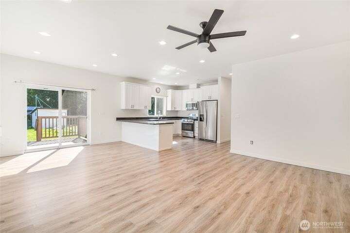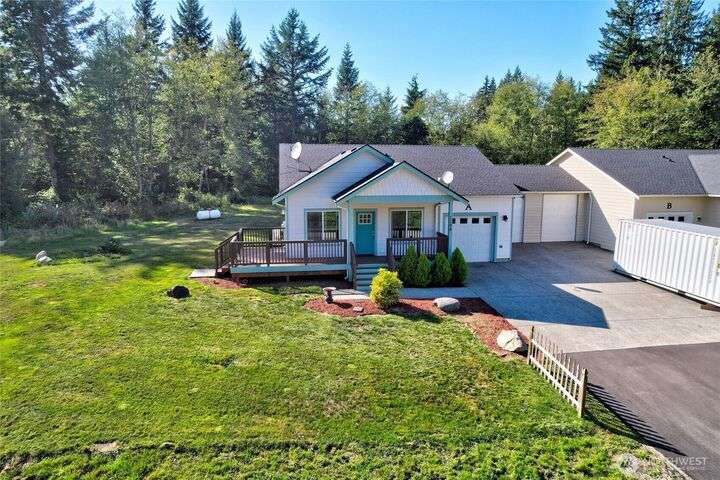 Beautifully maintained home on 2.26 acres located in a serene cul-de-sac with only three other lots! Open layout with quartz countertops, touchless faucet, and huge pantry off garage. Substantial Primary suite boasts 5-piece bath with large walk-in shower, stand-alone soaking tub & sizeable walk-in closet. All stainless appliances, including washer and dryer, stay! Easy-care vinyl plank flooring, cozy carpet, 2 mini-splits, and generator wiring. Enjoy outdoor living on the wrap around porch and expansive patio overlooking the massive yard.2 garages, RV and extra parking. The 2nd garage is 12 w x 22 Deep with 10 ft door.Perfect for a boat & all your toys! Peaceful setting close to shopping, schools, and freeway—room for possible ADU or shop!