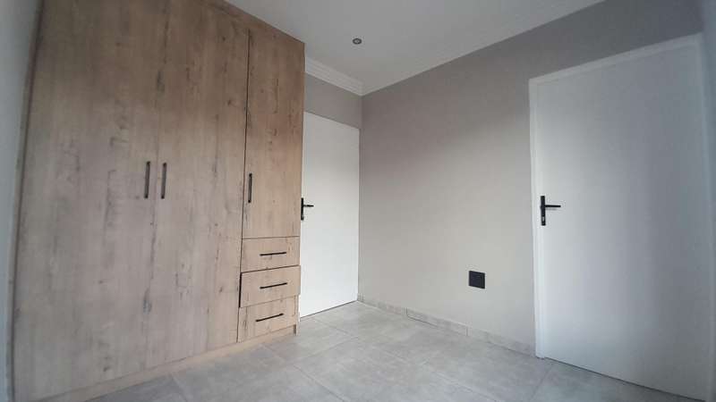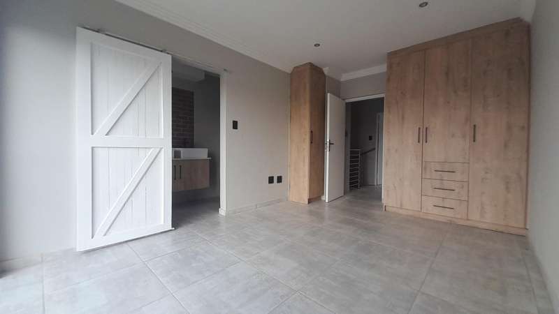 Stylish 2-bed, 2-bath residence with 2 garages in a secure setting featuring 24-hour security and a controlled access gate. This home offers built-in cupboards, a built-in braai, and a well-appointed kitchen. Enjoy a spacious dining area and lounge, leading to a charming patio overlooking the garden. The property is equipped with electric fencing for added security, and pets are welcome. Additional features include a guest toilet, intercom system, and contemporary paving.