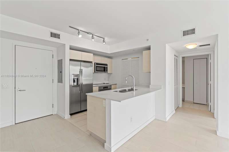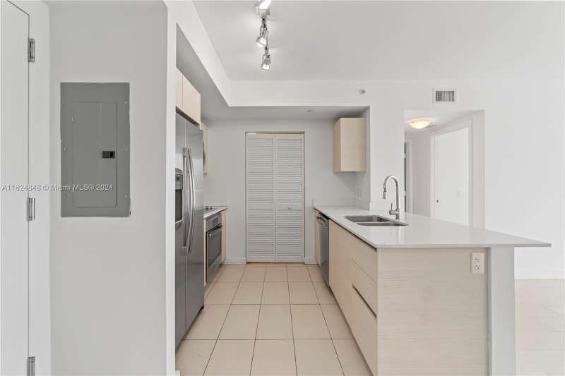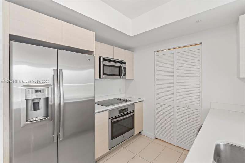 Open-concept contemporary floor plan featuring 2 bedroom, 2 bathrooms +den. Tile throughout. Wide private terraces with glass railings for unobstructed views, accessible from the living & bedroom areas. Energy efficient, tinted impact resistant floor to ceiling sliding glass doors & windows. SS appliances, washer & dryer in unit. Double SS under-mount sink. Bathroom features European cabinetry. 5 min. to the design district. Tenant occupied until April 3, 2025.