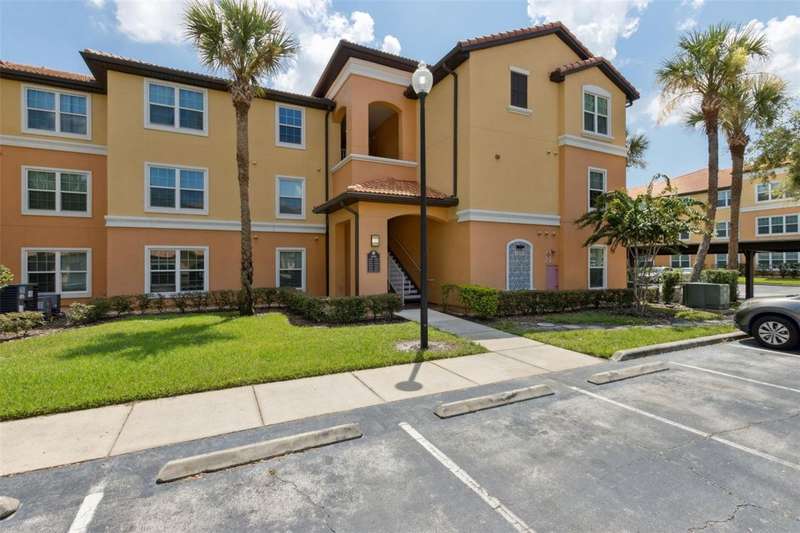 Experience top-floor privacy and everyday convenience in this bright 2-bed, 2-bath condo located in the gated Cypress Fairway community of Orlando. This move-in-ready condo offers peace of mind with a 2022 roof replacement by the association, freshly refinished stucco, exterior repaint, and new energy-efficient windows with upgraded insulation for improved comfort and lower utility costs. The open layout features a light-filled living and dining area, upgraded ceiling fans, new mini blinds, and modern shower heads. The owner's suite includes a spacious walk-in closet, while the top-floor location means no upstairs neighbors and a quiet landing at the stairway entry. Residents enjoy resort-style amenities including a clubhouse, fitness center, tennis courts, playground, pool, picnic and grill areas, walking paths, and 24-hour gated access. Monthly dues cover exterior maintenance, reserves, grounds care, pest control, trash, and security. This condo is ideal for a primary residence or investment.