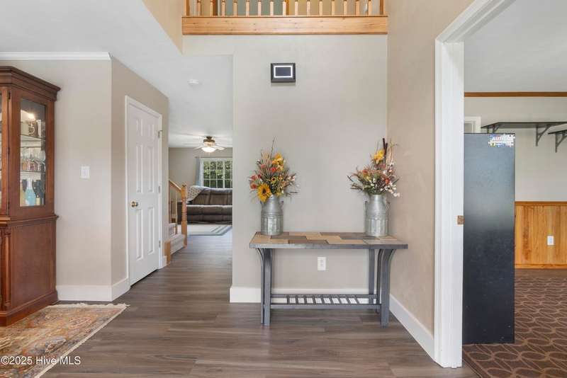 Traditional home located near the VA/NC line. Featuring 3 bedrooms, 2.5 bathrooms, and a spacious FROG. Just over 2100 sq ft. This beautifully maintained home sits on .69 acres in a peaceful, friendly neighborhood. You'll enjoy sunset views on the ride home with cornfields that really feel like country living. Step inside to a grand entryway with tall ceilings and wonderful natural lighting. Downstairs has LVP flooring, an updated kitchen with newer appliances (2 years old), solid surface countertops, soft close cabinets, eat in breakfast nook, dedicated dining room, a half bathroom, living room, and a flex room. Upstairs includes a larger master bedroom with dual sinks, garden tub, and walk in shower. Down the hallway are two more bedrooms, a full bathroom, and a large FROG. Access to the downstairs can be achieved through the FROG or hallway. Plus, there is no HOA! This home has tons of comfort and is in one of the best locations. Don't miss out on this gem!