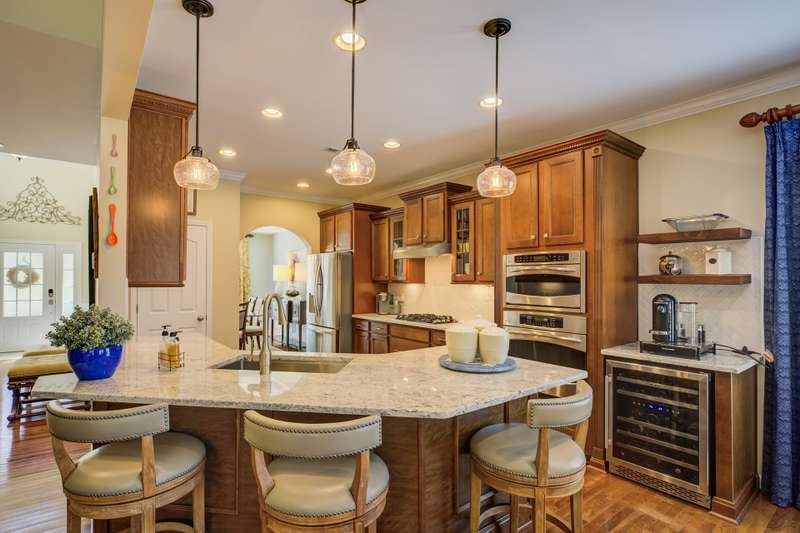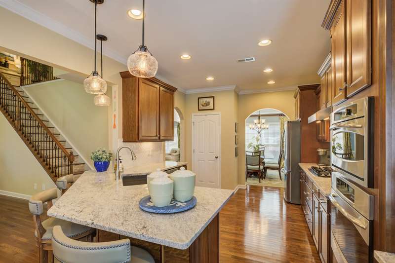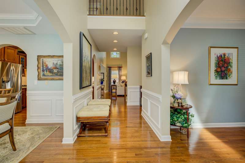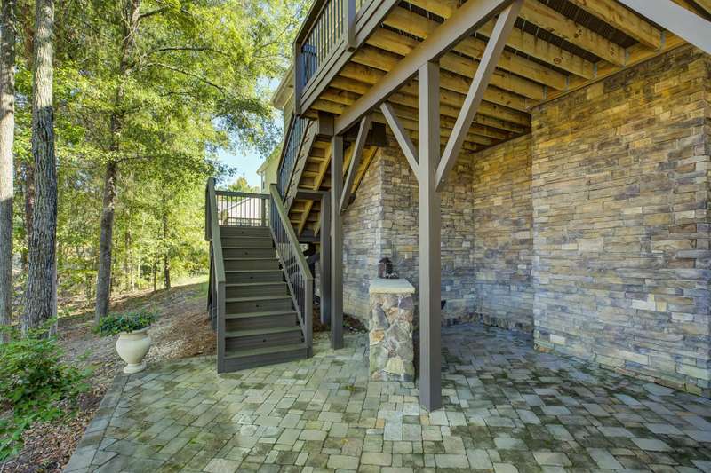 Fantastic home in the amenity-rich Palisades neighborhood. The rocking chair on the front porch is a welcoming entry into the grand two-story foyer. Formal living and dining rooms sit across from each other on either side. Both have delightful architectural details, including arched entryways, a tray ceiling in the dining room, and wainscoting that continues down the hallway. Formal living could double as an office/study space. The gourmet kitchen is equipped with a gas cooktop, wall oven & microwave, ample cabinetry, and expansive granite countertops with room for bar seating. Perfect for entertaining while preparing a gourmet feast! The two-story great room is flooded with natural light and is warmed by the gas fireplace. A large balcony with Trex decking, accessible just off the breakfast area, looks out over the serene wooded yard and lower paver patio area, maximizing the outdoor living space.The luxury primary suite features a tray ceiling, while the spa-like bath includes a glass-enclosed shower, soaking tub, dual vanities, a private water closet, and an oversized walk-in closet. Upstairs, there are three additional spacious bedrooms and a hall bath. This home has a central vacuum system. The sizeable 2-car garage and extended driveway give flexible parking options. Lawn maintenance is included in the HOA. Enjoy multiple walking trails, a residents' clubhouse, an outdoor pool, and game courts ?just a few of the reasons the Palisades is a premier community in the Charlotte area. Regarding the development on the land behind the home, Tri Pointe Builders is constructing approximately 120 single-family homes, with the garages facing an alley. It will be beautifully landscaped.