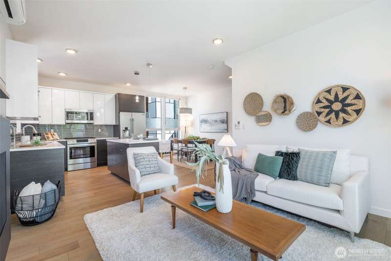 PRICE DROP on this custom town home, high ceilings, huge windows, top of the line finishes, sunny roof top deck above primary suite & alley parking! This is not the run of the mill town house, spacious & open floor plan blend comfort & style. Floor to ceiling windows provide ample natural light + custom window treatments. Chef’s kitchen, seating island, quartz counters, stainless appliances + spacious dining & living rm w/ cozy fireplace. Lower level offers 2 bds & shared full bath. Upstairs, the primary bed features walk-in closet, spa-like en suite bath w/ heated floors & designer tile & W/D. Fenced front and rear yard areas. Blocks to Greenwood shops, parks & amenities. This town house is as clean as they come - move right in and enjoy !