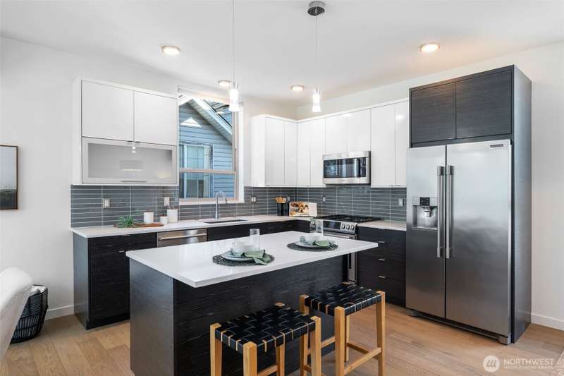 Fabulous & spacious at over 1,600 sq ft, this 3bd/1.75ba super duper clean town home is move in ready! Designer finishes, tall ceilings and open floor plan blend comfort & style. Floor to ceiling windows provide ample natural light + custom window treatments. Chef’s kitchen, seating island, quartz counters, stainless appliances + spacious dining & living rm w/ cozy fireplace. Private lower level offers 2 bds & shared full bath. Upstairs, the primary bed features walk-in closet, spa-like en suite bath w/ heated floors & designer tile & W/D. Large rooftop deck with territorial views abound. No HOA. Carport parking off alley. Fenced front and rear yard areas. Blocks to Greenwood shops, parks & amenities. Come see it, You'll love this one !