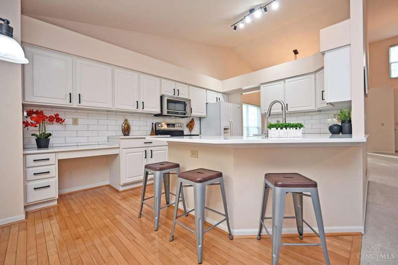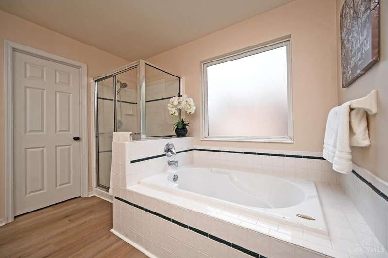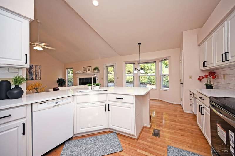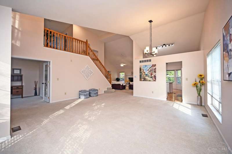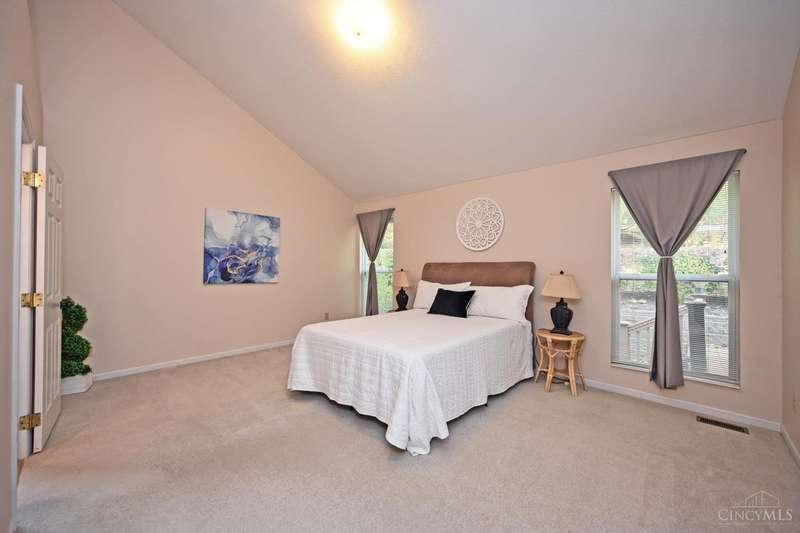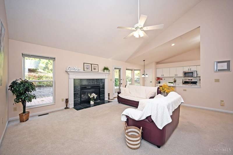 Bright and open-concept home with vaulted ceilings features approximately 3,500 sq ft of living space. First-floor master suite with garden bath and walk-in closet. Updated kitchen with new quartz countertops and stainless steel appliances opens to the family room, which features a fireplace and walkout access to a very private, maintenance-free deck overlooking the trees. Formal living and dining rooms are perfect for gatherings. First-floor office with French doors. Finished basement with playroom, game and exercise room. Whole-house solar panels (2020) help to reduce energy costs. Large laundry and mudroom. Irrigation system. New HVAC 2022. Move-in ready! Conveniently located close to shopping and highways.