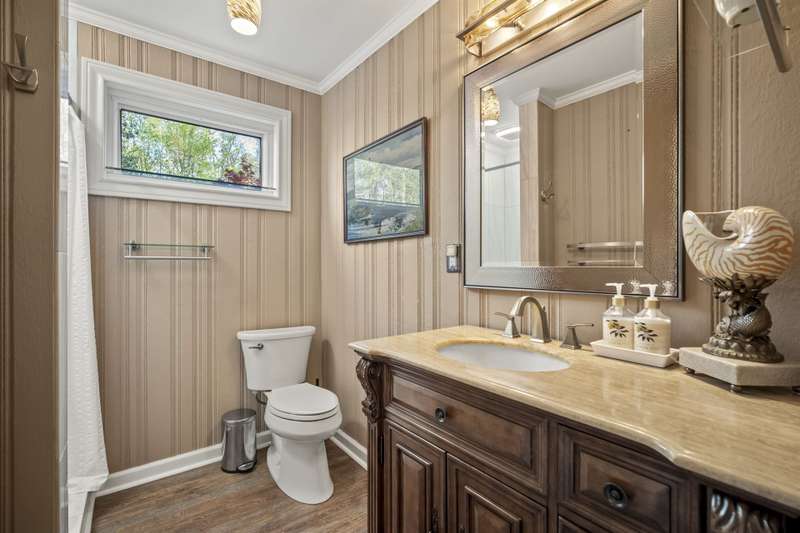 Serenity Place: A Lakeside Escape Surrounded by Nature's Beauty Discover the perfect blend of privacy and natural splendor at this extraordinary lakeside estate. Set on over 10 acres of lush, wooded grounds with more than 400 feet of pristine shoreline, this retreat offers the ultimate sanctuary just minutes from downtown Greenville. Fall colors explode across the landscape, and the gentle sounds of water and wildlife create a serene, peaceful backdrop every day. The main residence features 4 spacious bedrooms and 4 full bathrooms, with breathtaking lake and forest views from nearly every room. The living room, centered around a grand fireplace, invites cozy evenings, while the dining room frames meals against stunning natural vistas. Step outside to expansive decks or your private dock?perfect for kayaking, fishing, or simply soaking in the tranquility of the lake. A charming artist's cottage tucked among the trees provides a quiet haven for creative pursuits, meditation, or guests. As the sun sets, gather around the fire pit patio and let the sounds of water and rustling leaves set the tone for unforgettable nights under the stars. Meander along winding paths and immerse yourself in the vibrant sights and sounds of nature. From morning coffee on the deck to golden-hour strolls along the shoreline, every moment at this property invites you to slow down, savor the serenity, and enjoy a lifestyle where every day feels like a retreat.