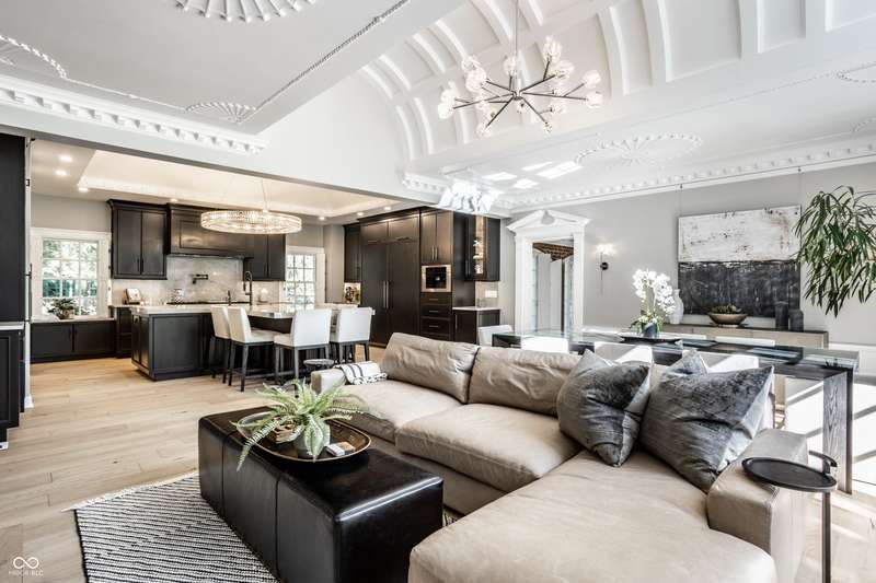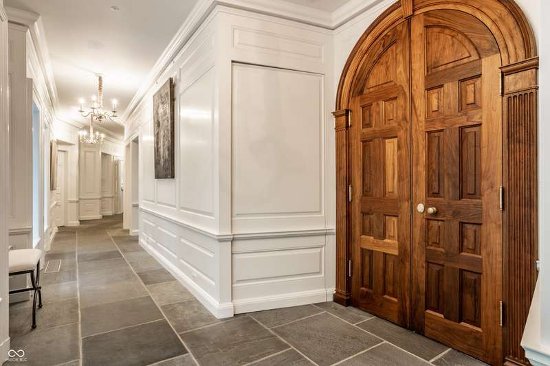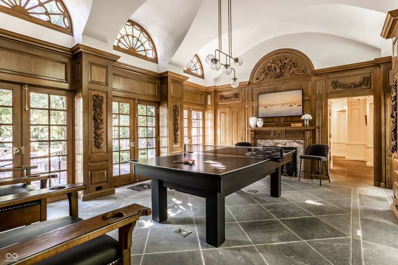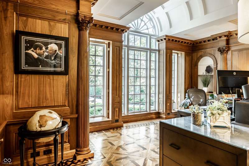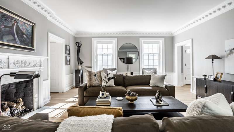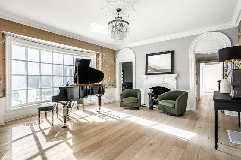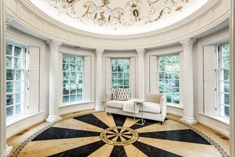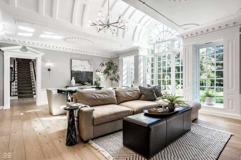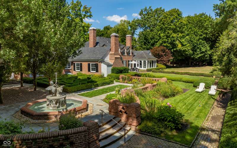 5715 Sunset Lane offers a rare opportunity on one of Indianapolis' most private and prestigious streets. Recently transformed through a meticulous renovation, the residence blends timeless craftsmanship with sophisticated design for today's lifestyle. Six restored fireplaces, a new copper-domed roof, and refined trimwork preserve its elegance, while strategic walls and ceilings were opened to create a seamless entertaining space anchored by a custom kitchen with Fahrenbacher cabinetry, Thermador appliance suite, and quartzite countertops. The reimagined primary suite showcases newly vaulted ceilings, a spa-inspired bath with heated floors, and new closet with main-level laundry. Enhancements continue with a new main-level bedroom and bath, media room, wellness room with hybrid sauna, Control4 automation, Sonos sound, upgraded security, and five new furnaces-plus additional upgrades too numerous to list. The south wing introduces a light-filled tea room, private offices, and elevator access. Expansive windows overlook refreshed landscaping, museum-quality gardens, and the iconic fountain, while multiple living areas and thoughtfully designed spaces make entertaining effortless. A rare combination of history, craftsmanship, and modern luxury. Welcome home to Sunset Lane!