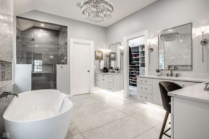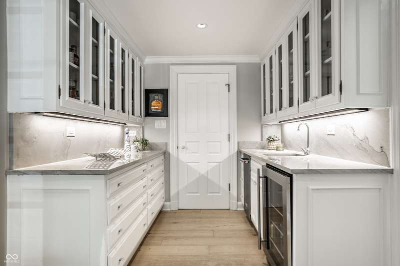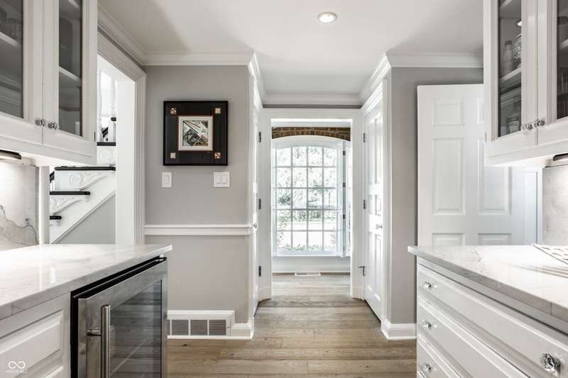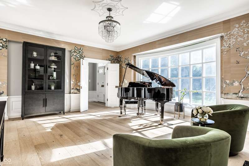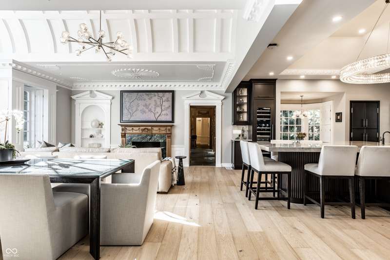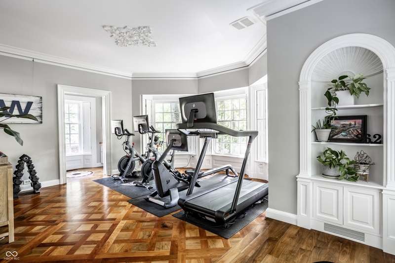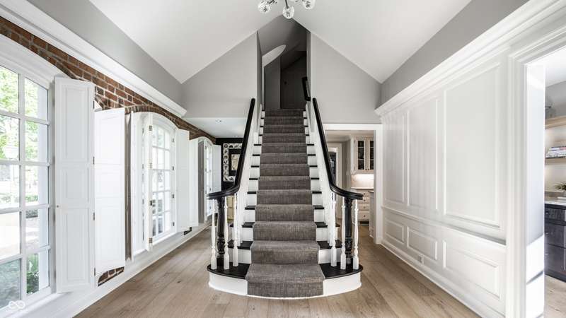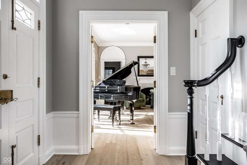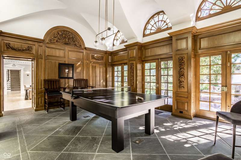 5715 Sunset Lane offers a rare opportunity on one of Indianapolis' most private and prestigious streets. Recently transformed through a meticulous renovation, the residence blends timeless craftsmanship with sophisticated design for today's lifestyle. Six restored fireplaces, a new copper-domed roof, and refined trimwork preserve its elegance, while strategic walls and ceilings were opened to create a seamless entertaining space anchored by a custom kitchen with Fahrenbacher cabinetry, Thermador appliance suite, and quartzite countertops. The reimagined primary suite showcases newly vaulted ceilings, a spa-inspired bath with heated floors, and new closet with main-level laundry. Enhancements continue with a new main-level bedroom and bath, media room, wellness room with hybrid sauna, Control4 automation, Sonos sound, upgraded security, and five new furnaces-plus additional upgrades too numerous to list. The south wing introduces a light-filled tea room, private offices, and elevator access. Expansive windows overlook refreshed landscaping, museum-quality gardens, and the iconic fountain, while multiple living areas and thoughtfully designed spaces make entertaining effortless. A rare combination of history, craftsmanship, and modern luxury. Welcome home to Sunset Lane!