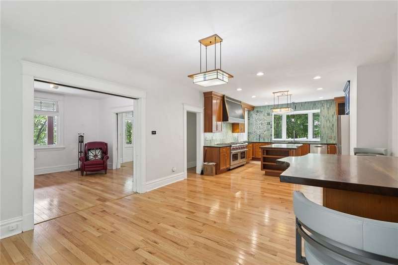 Arts & Crafts home with updates and river-view porch in Sewickley. Tucked into a private, wooded setting above the river, this residence blends period character with thoughtful upgrades. A chef's kitchen anchors the main level-Wolf range, built-in Bosch coffee system, handmade walnut island, and soapstone countertops-opening to dining and living spaces, plus mudroom and full bath. Upstairs: four bedrooms. Unfinished attic and basement offer storage/future potential. Systems upgraded (electrical, plumbing, forced-air A/C) and newer windows in much of the home (all per seller). Carport and paved driveway; 50-amp outlet for EV charging. Enjoy the expansive porch with panoramic river views; occasional train noise from valley below. Quaker Valley School District; convenient to the Sewickley Village and major routes.