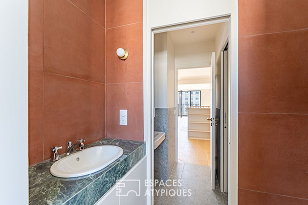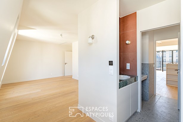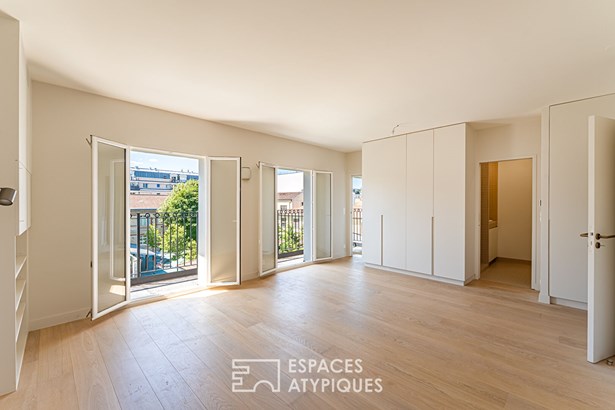 Ideally located in Vieux Puteaux, this new development built on an existing building offers a superb duplex located on the third and fourth (and top) floors (no elevator) of a small co-ownership of six residential units. It measures nearly 146 m2 (1,600 sq ft) of floor space, including just over 141 m2 (1,600 sq ft) of living space.