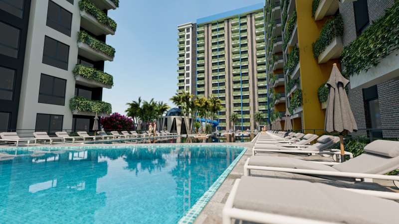 The newly-built flats are situated in a complex within walking distance of the beach in the Cesmeli neighborhood in Erdemli, Mersin. Mersin is a beloved destination with its climate, coastline, and historical richness. With the affordable housing prices, the city is a popular location for local and foreign investors. Located in the Erdemli district, Cesmeli is an important residential center. It features amazing beaches, turquoise seawater, an advantageous location, and beautiful nature.