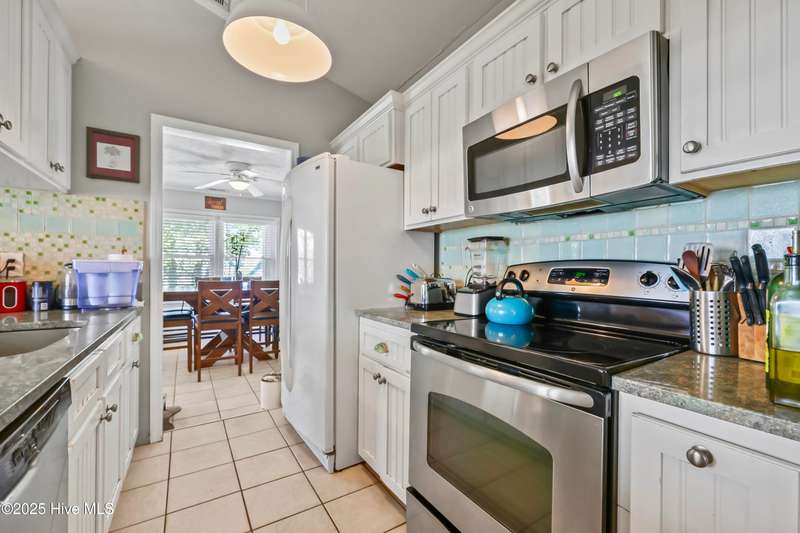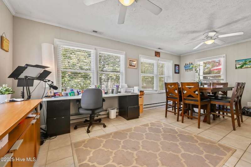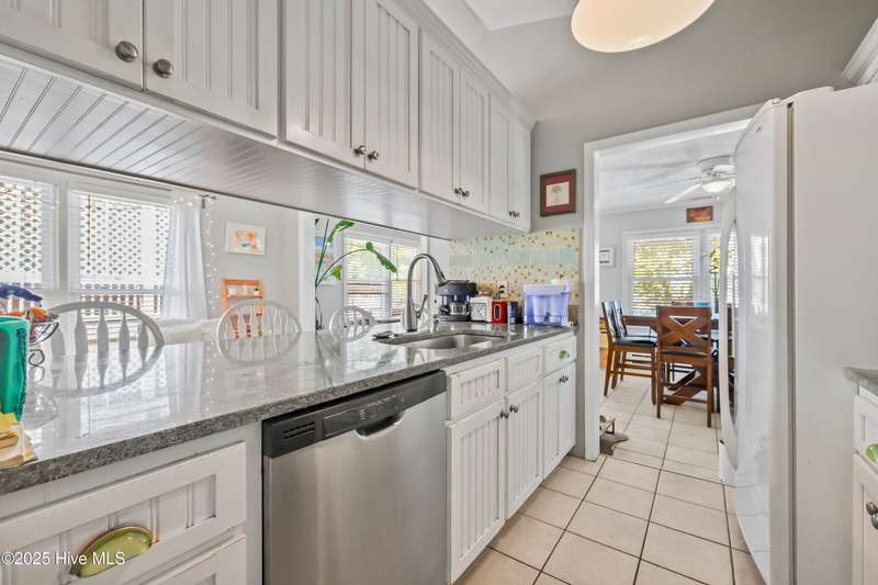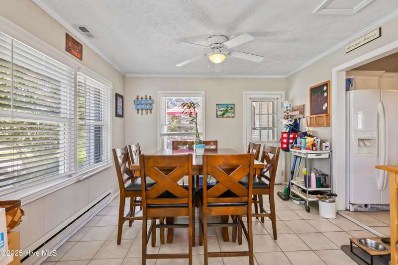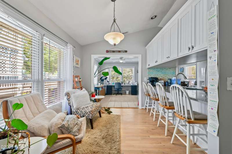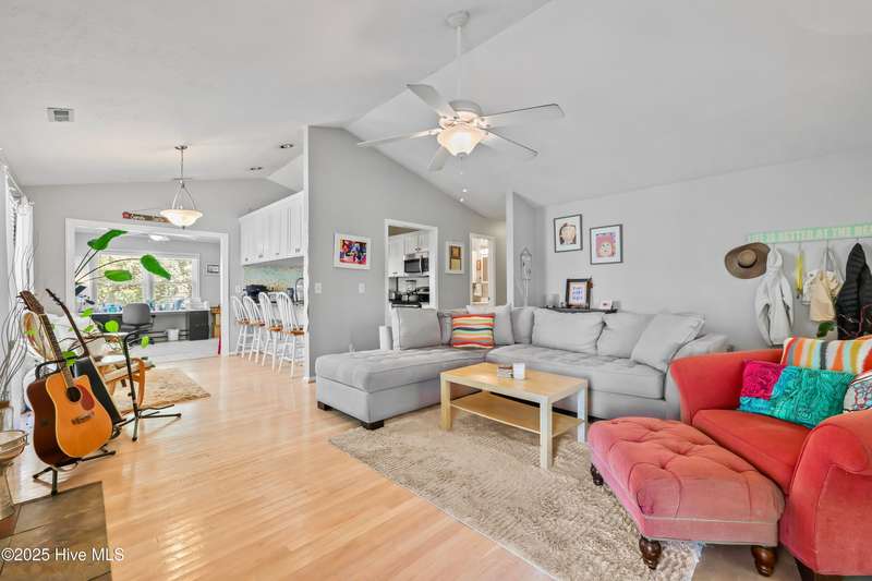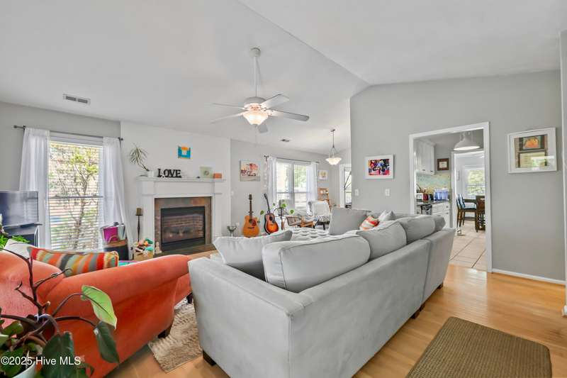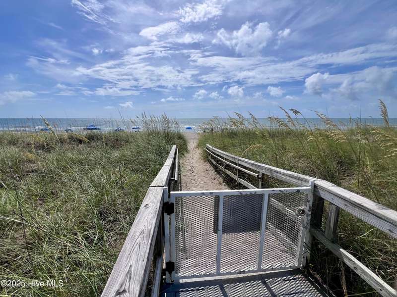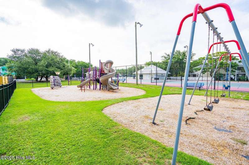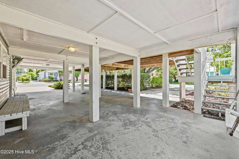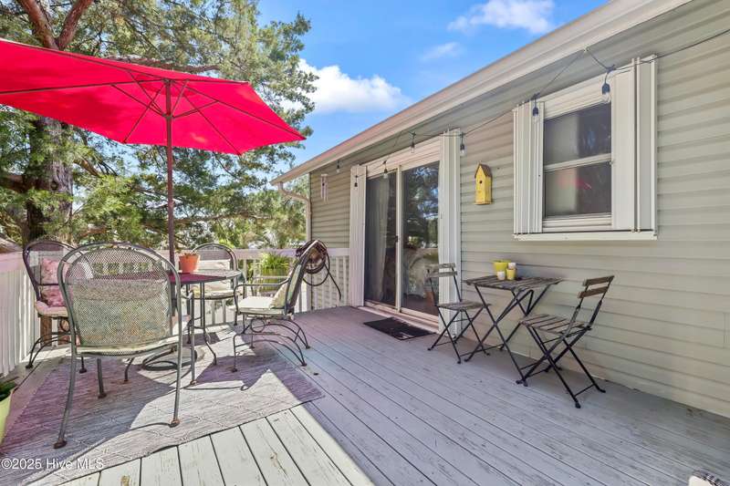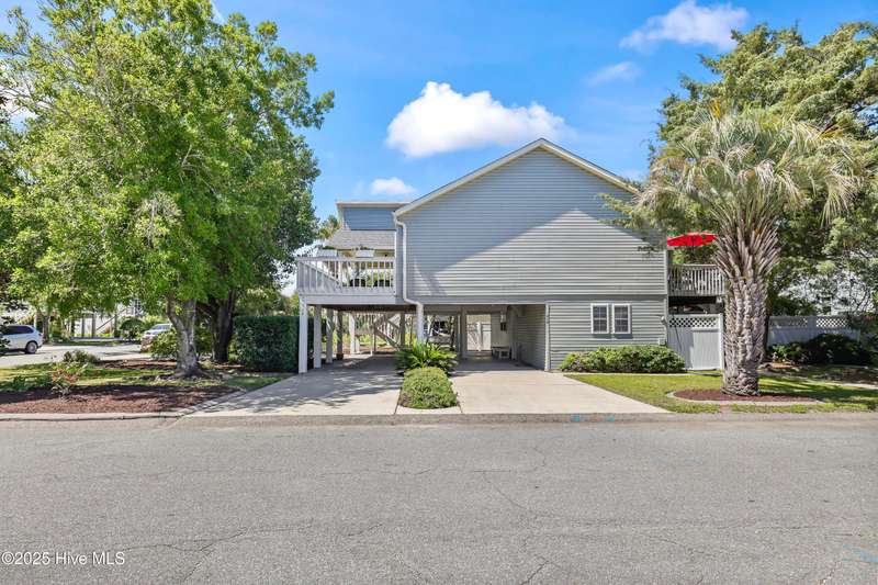 Coastal Calm Meets Small-Town Charm Welcome to the best of beach and small-town living in this peaceful, zen-inspired home nestled on a rare, tree-shaded corner lot in the front of Carolina Sands. Just 500 steps to the ocean and 275 steps to the community pool, clubhouse, pickleball/tennis courts, playground, and mailboxes, this cozy oasis offers the perfect blend of tranquility and connectionwith some of the lowest HOA fees around. Relax on the spacious covered front porch that runs the length of the home or unwind on the quiet back deck as you listen to the surf. The private backyard features a 6-foot vinyl fence, large patio, cold outdoor shower, and a handy storage shedideal for beach living. Inside, the open layout with vaulted ceilings creates a warm, airy feel. A peaceful fireplace anchors the cozy living space, while the sunny dining area is perfect for slow mornings. An oversized sunroom offers flexibility for a large formal dining room, home office, playroom, or gym, with direct access to the deck and yard. The primary bedroom includes a walk-in shower, private deck access, and a serene retreat for quiet evenings. With three covered and three uncovered parking spots, there's room for cars trucks and golf carts and jet skis. Deeded beach access has shower, benches, dog bowls and a hose for your boards. Bike and golf cart parking at the front of the neighborhood makes every day at the beach a breeze. This long-term community (no STRs allowed) preserves a quiet, family-friendly feel just a short walk from the boardwalkclose enough to enjoy, far enough to escape the noise. Elevated living in the AE flood zone includes 500+ sq. ft. of temperature-controlled storage - not living space - below. Recent updates: roof (2018), heat pump (2015), water heater (2024), dishwasher (2019), garbage disposal (2025). Home has hurricane shutters. All appliances, storage fridge, shed, and lawn chairs convey. Refer to listing docs for details.