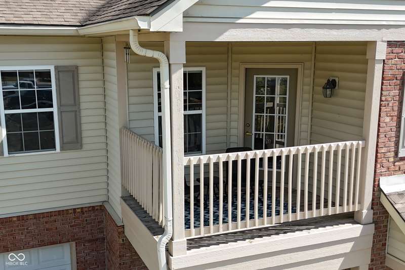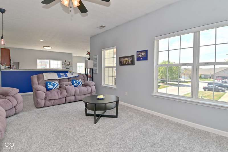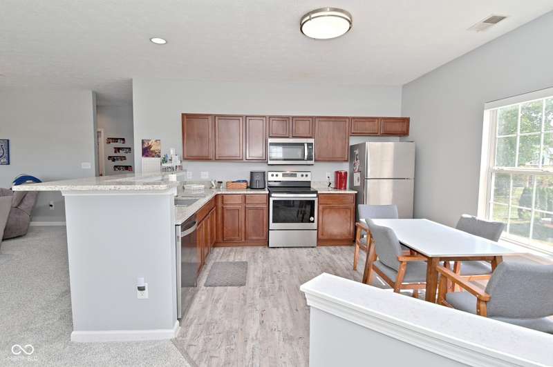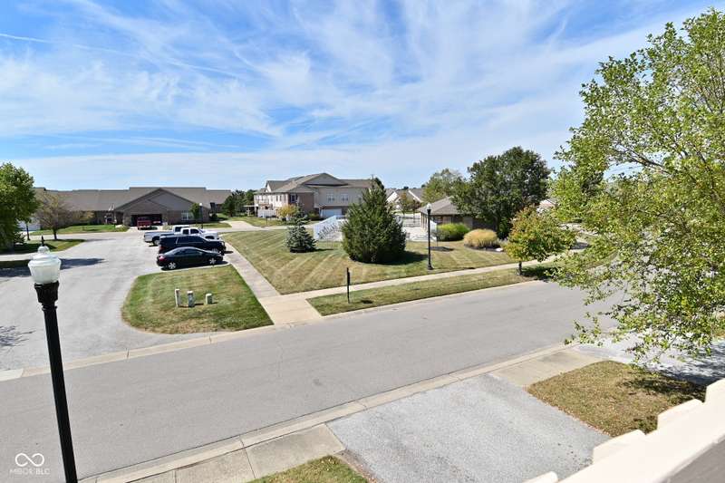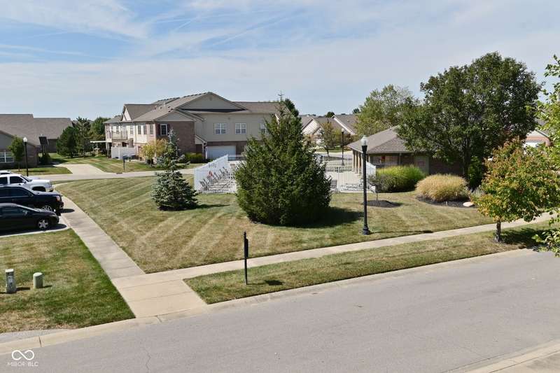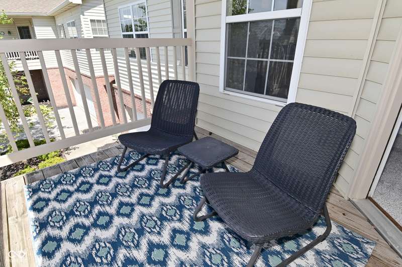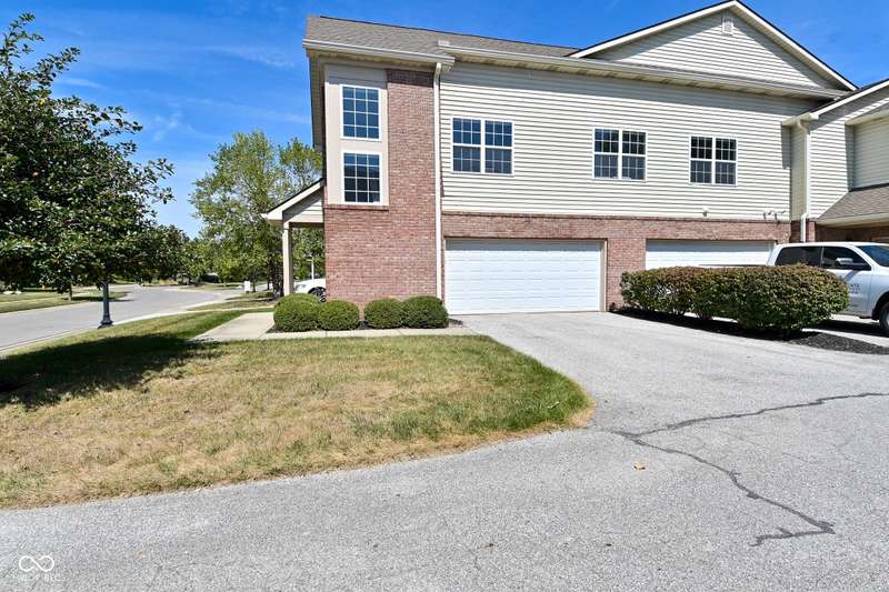 This is the perfect place for maintenance-free living! This large unit features lots of natural light. There are 2 bedrooms. and 2 baths, 9 ft. ceilings, a very big kitchen with a ton of storage in the cherry cabinets. All appliances stay, incl. washer/dryer, A fin. 2-car garage. Views to the pool and great sunsets from your very own balcony. This beautiful condo has loads of space. The perfect quiet location and shopping so close you could walk there. A list of updates include, Kitchen appliances and water softener in 2019, new countertops in 2021, new carpet 2022, new master shower and whole house motorized blinds in 2024, controlled by 1 remote. And new A/C and furnace in 2018.