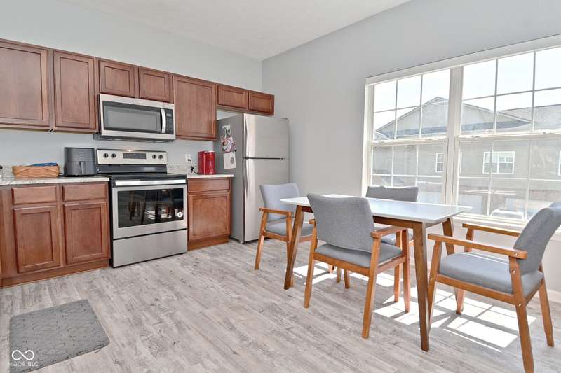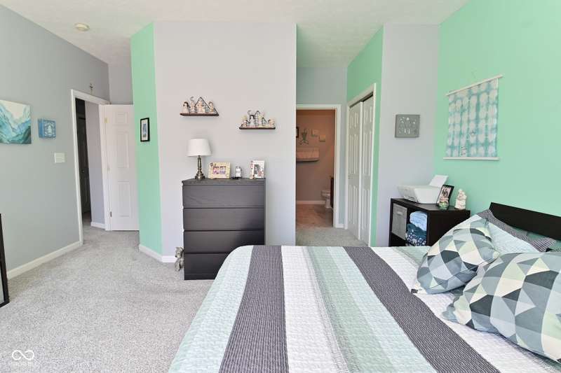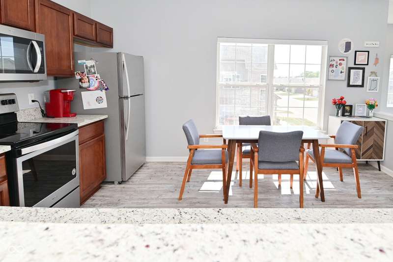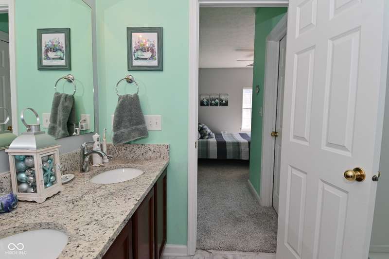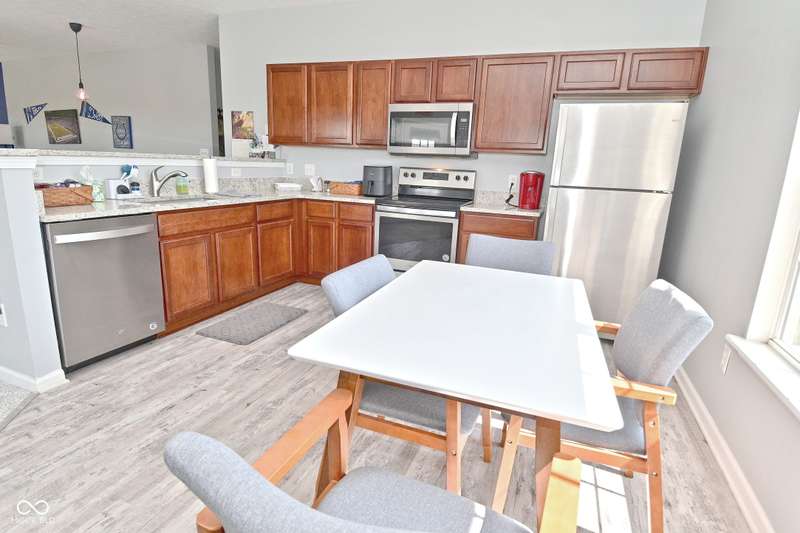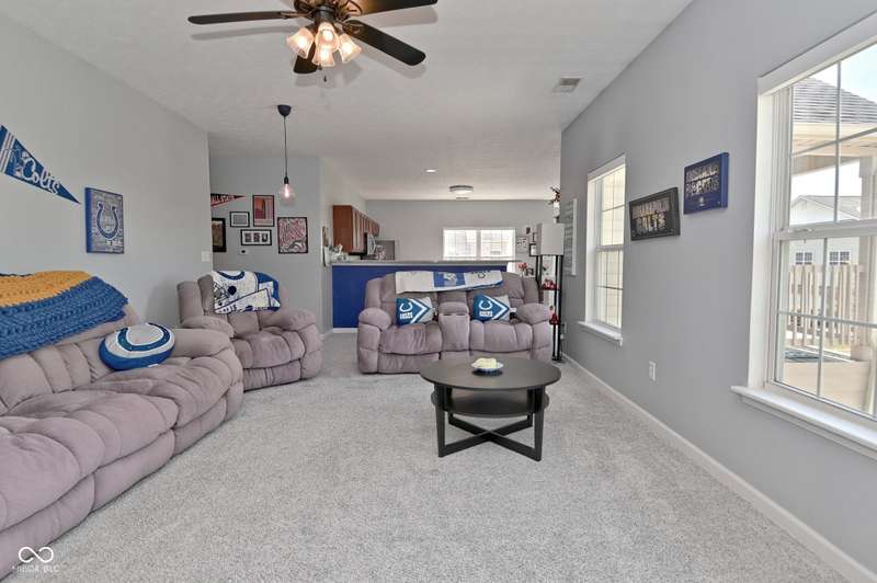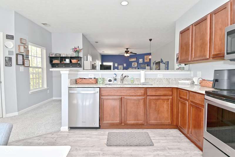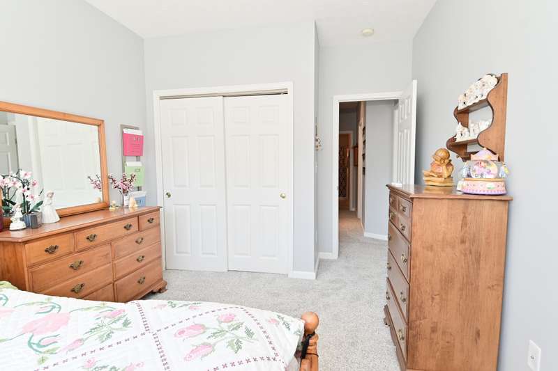This is the perfect place for maintenance-free living! This large unit features lots of natural light. There are 2 bedrooms. and 2 baths, 9 ft. ceilings, a very big kitchen with a ton of storage in the cherry cabinets. All appliances stay, incl. washer/dryer, A fin. 2-car garage. Views to the pool and great sunsets from your very own balcony. This beautiful condo has loads of space. The perfect quiet location and shopping so close you could walk there. A list of updates include, Kitchen appliances and water softener in 2019, new countertops in 2021, new carpet 2022, new master shower and whole house motorized blinds in 2024, controlled by 1 remote. And new A/C and furnace in 2018.
