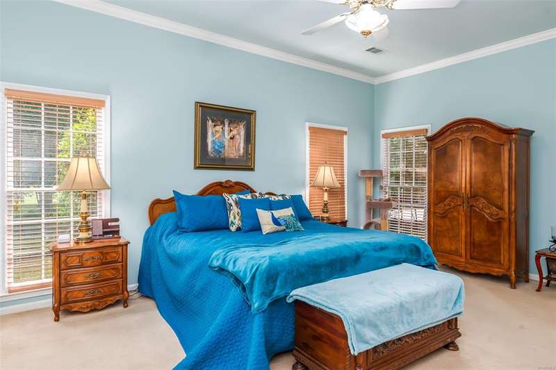 BEAUTIFUL 5-bedroom, 3.5-bath home in Wynlakes! Ask about the ASSUMABLE MORTGAGE w/3.125 interest rate! Sellers offering a $5,000 allowance with an acceptable offer! This one-owner home sits on a large lot with mature trees and overlooks the 1st hole of the Wynlakes Golf Course. Step into the Foyer and you’re welcomed by a Formal Dining Room and a Formal Living Room, which would be perfect for a Home Office. The spacious Den features surround sound, a gas fireplace, custom-built-ins, and a wall of windows offering stunning golf course views. The Kitchen boasts granite countertops, a tile backsplash, an abundance of cabinets, recessed lighting, TWO ovens, a breakfast bar, and a separate pantry cabinet. The adjoining Breakfast Room and Keeping Room make for a cozy, functional space ideal for your morning coffee or relaxing after dinner. The flowing floor plan is perfect for both everyday living and entertaining your guests. The main-level Primary Suite is a true retreat with private access to the keeping room and a luxurious en-suite Bath featuring a double vanity, makeup counter, large Jacuzzi tub, tiled shower, extra built-in cabinets, and a spacious walk-in closet. The main-level Guest Bedroom offers a peaceful view of the backyard and a private full bath—ideal for guests or multi-generational living. A convenient Half Bath is located in the hall, and the Laundry Room features a deep sink, folding counter, and built-in cabinets. Upstairs are 3 additional Bedrooms and a Jack-and-Jill Bath with separate vanities & a private bathing area. One of the upstairs Bedrooms is oversized and perfect as a Media Room/Bonus Room/Playroom. Exterior features include a 2-car Garage with an attached storage room, a nice parking pad, an underground sprinkler system, a deck with a built-in gas grill, and mature trees offering plenty of privacy and pleasant shade. Updates: HVAC (2021 & 2023), Roof (2018), Chimney Cap (2025).