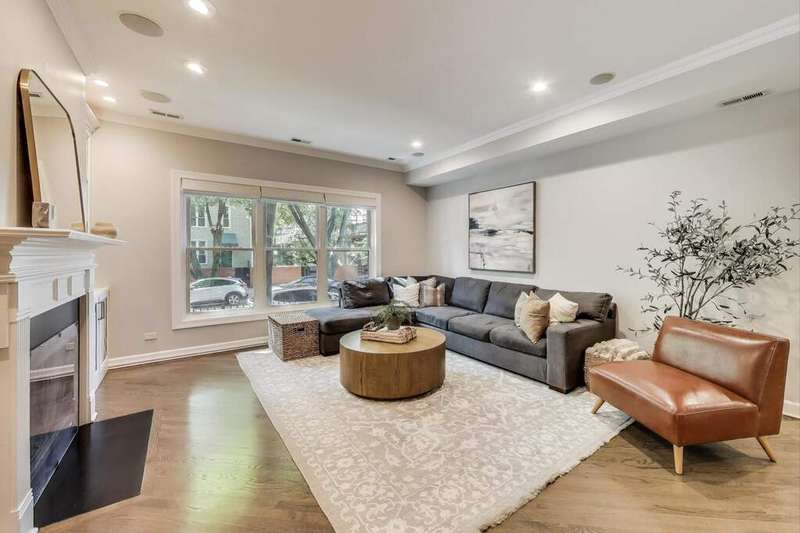Beautifully updated extra wide layout 4-bedroom, 3-bathroom residence in the heart of Old Town. This spacious multi-level home has been fully renovated and thoughtfully enhanced with modern finishes and conveniences throughout. Highlights include a designer kitchen with quartz countertops, custom cabinetry, and high-end appliances; refinished hardwood floors; built-in bookshelves; and a whole-home Sonos sound system. The spa-inspired upstairs bath features a steam shower and contemporary finishes. Recent owner updates (2021-2025) include new hardwood flooring in bedrooms, modern light fixtures, custom ELFA storage solutions, a walk-in pantry with integrated wine fridge, new washer/dryer, refinished railings, refreshed patios, and brand-new energy-efficient windows with custom window treatments. Outdoor living is enhanced with a private patio featuring composite wood decking, garden wall, and exterior lighting. Lower-level spaces have been refreshed for added versatility, including a built-in office coffee station. Move-in ready with a seamless blend of style, comfort, and function-this home offers rare quality in one of Chicago's most desirable neighborhoods. Walking distance to everything the city has to offer!