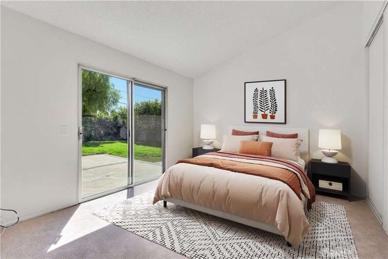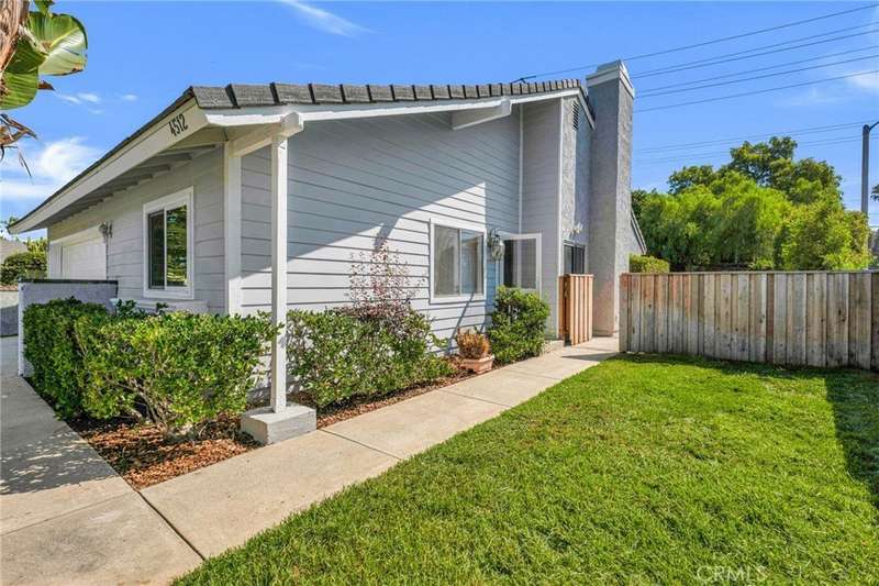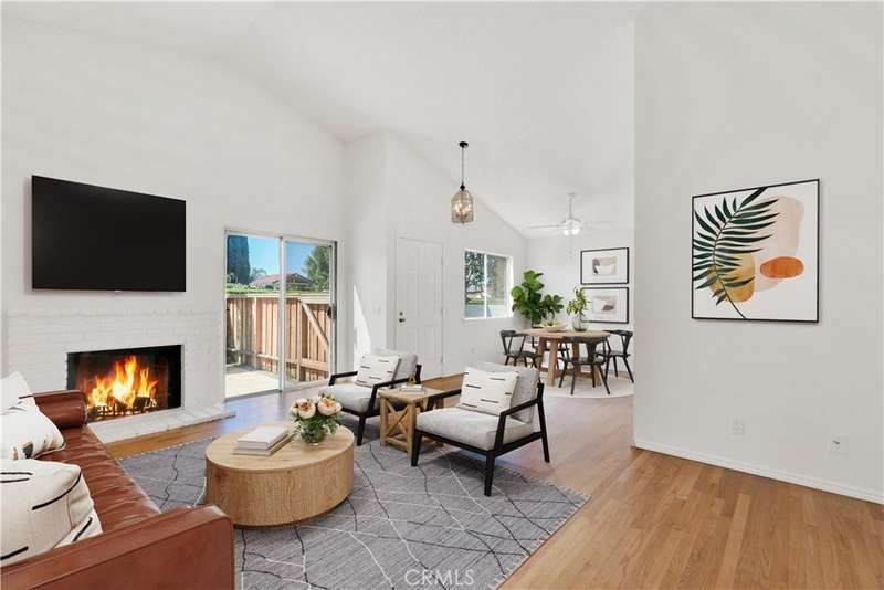 Welcome to this charming 3-bedroom, 2-bathroom residence that sits on a generous 7,400+ sq ft lot. Designed for both comfort and style, the home offers an open and airy floor plan accented by vaulted ceilings that fill the living spaces with light and a sense of spaciousness. The living room centers around a cozy fireplace, the perfect spot to relax or entertain, while the primary suite serves as a private retreat with its own en-suite bath. One of the secondary bedrooms opens to a private patio, an ideal space to savor your morning coffee or evening breeze. Recent upgrades elevate the home even further, including new carpeting in the bedrooms, new tile flooring in the kitchen and both bathrooms, and beautifully restored and sealed hardwood floors. Step outside to a delightful courtyard and expansive backyard, offering endless possibilities for outdoor dining, gardening, or gatherings with family and friends. Additional highlights include a two-car garage with ample storage. Thoughtful updates and inviting details throughout make this home a rare find, blending functionality with warmth and charm. Don’t miss the chance to make this beautifully updated property your own!