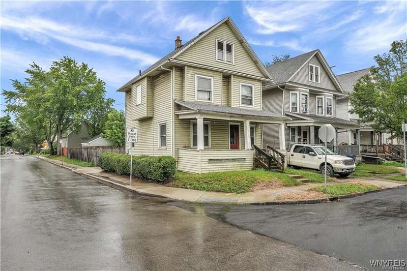 Great single family home in Buffalo's Lovejoy Neighborhood! This 2-story home offers 4 spacious bedrooms and 1 full bathroom. The first floor features a cozy living room, formal dining room, family room, and kitchen with vinyl & hardwood floors throughout. All rooms are generous room sizes. The full basement and attic provide plenty of space for storage. The exterior features a covered porch situated on a corner lot with a large fenced in backyard. Don't miss out on this great opportunity to make this yours!