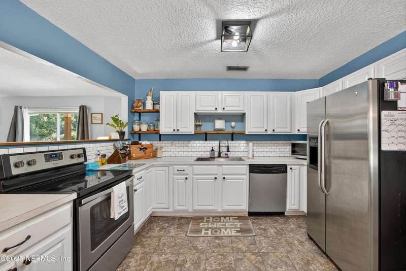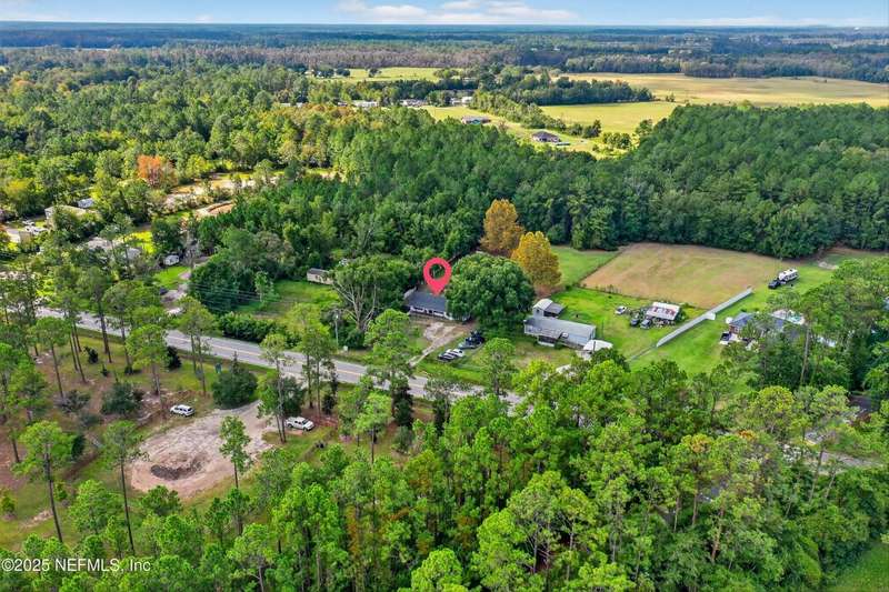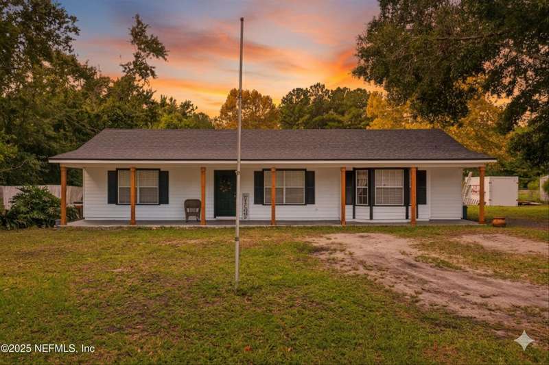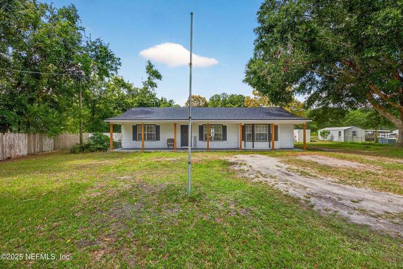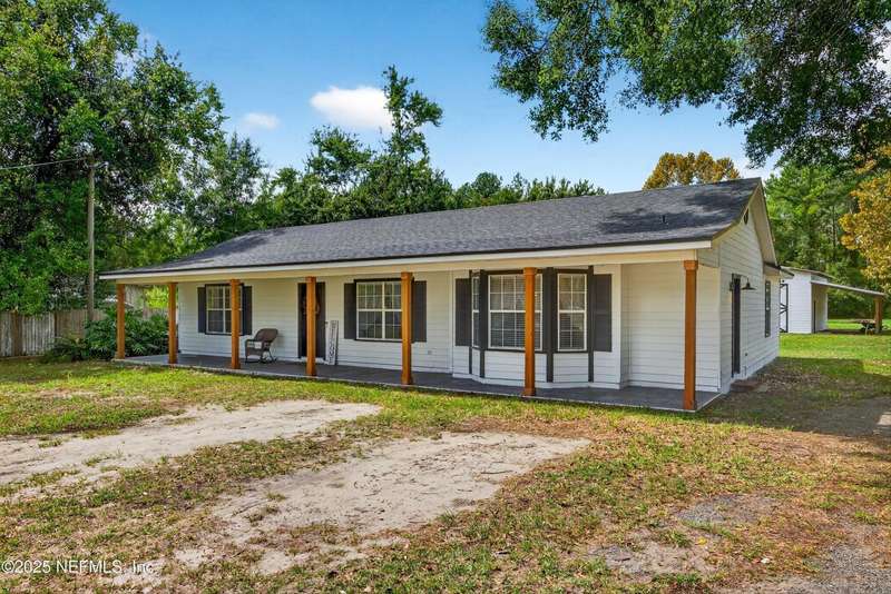 Country Living just minutes from the River City! This 1.73 acre property offers an updated 1-level home with farmhouse appeal and a huge fully-functional barn with power for parking, lawn equipment, home gym, separate office and storage loft! If full-length covered porches with rocking chairs, sliding barn doors and room for large family gatherings are on your Dream Board, this property is for you! White cabinets, stainless appliances and a classic, subway tile backsplash complete the scene in the large, eat-in kitchen. New Roof, Fresh Exterior Paint and Barn Renovation completed in 2025! The property is fully fenced, offering privacy and space for RV & boat storage, pets, gardening, or even a future pool! Recreation abounds with the Jax-Baldwin Rail Trail right across the street. All within 15 minutes of Publix, Winn-Dixie, Cecil Aquatic & Equestrian Center, the local library, and more. Escape the traffic and embrace the country lifestyle, without giving up city convenience!